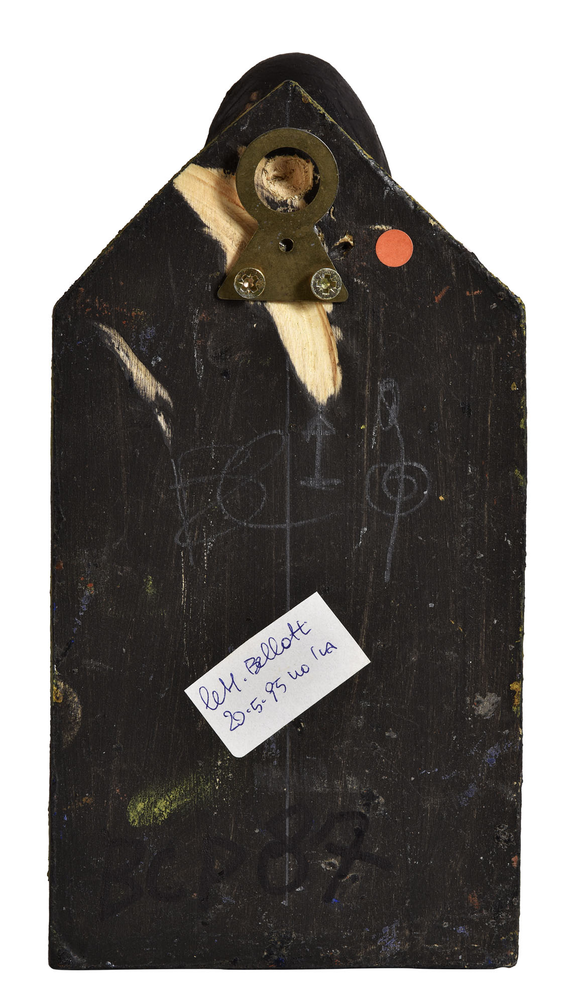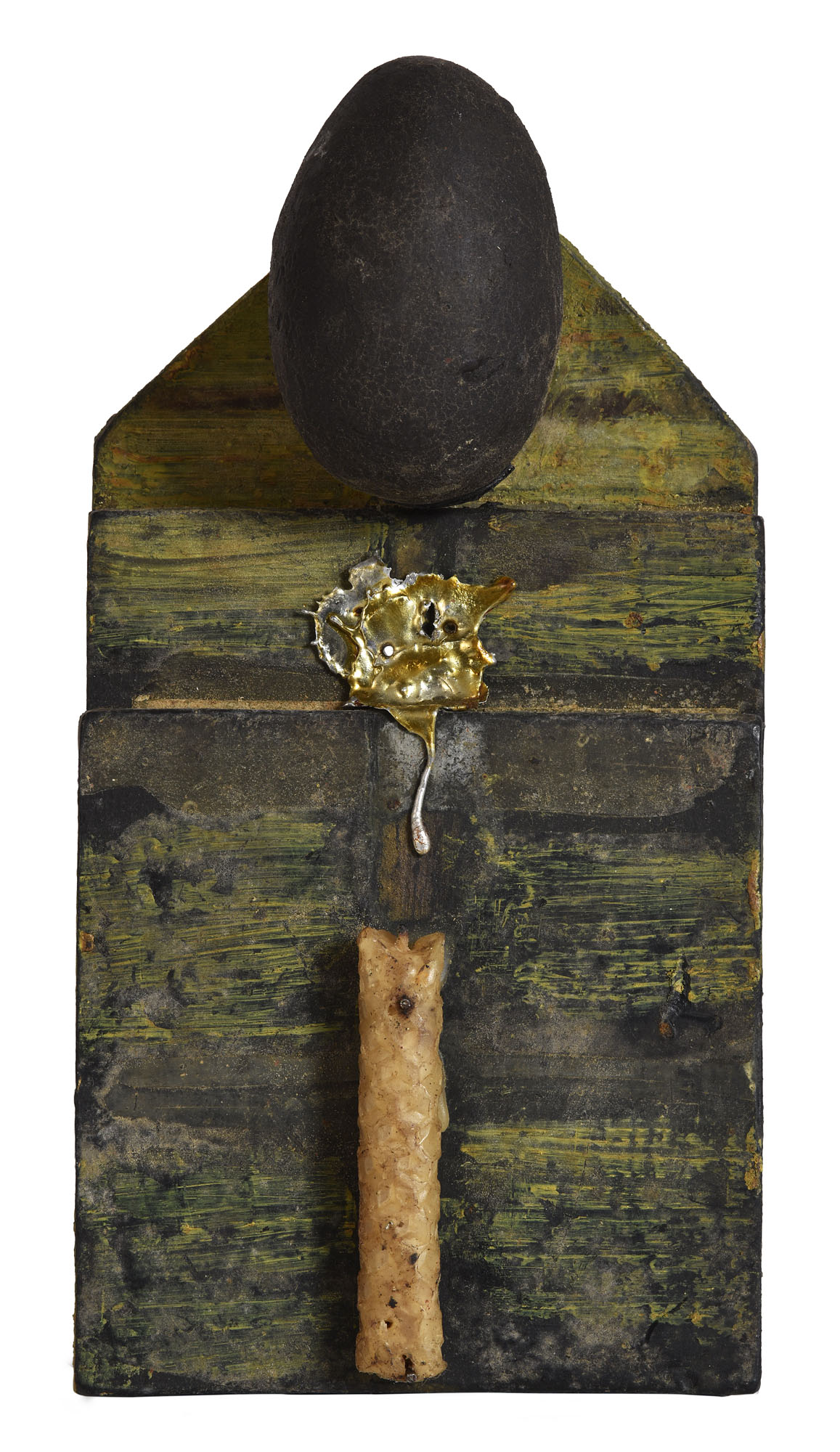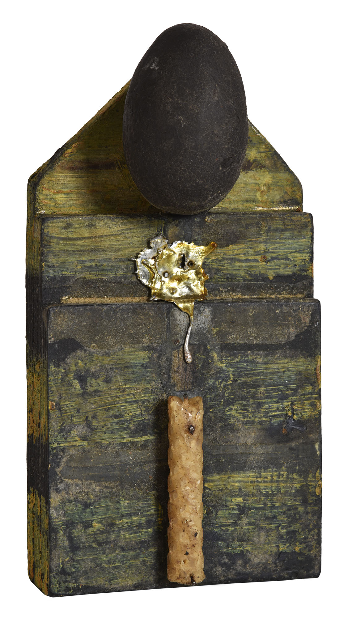 BRUNO CECCOBELLI(1952)Senza titolo1990Tecnica mista e applicazioni su tavola19 x 10 x 6 cm circaSigla al retroPROVENIENZA:Collezione privata, Milano