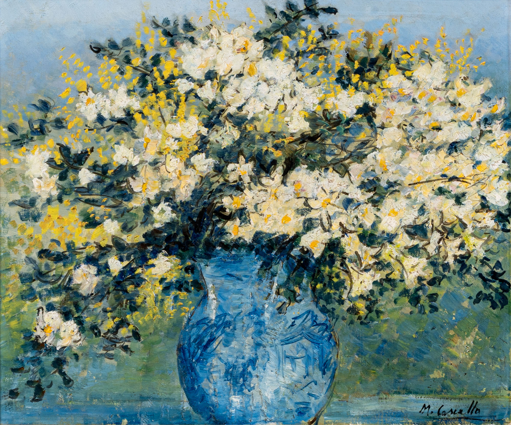 MICHELE CASCELLA(1892 - 1989)Natura morta dei fioriOlio su tela38 x 45,8 cmFirmato in basso a destraPROVENIENZA:Galerie Juarez Inc., Palm Beach (etichette al retro)Collezione privata, Palm BeachChristie's New York, Impressionist and Modern Art, 14 settembre 2006, lotto 114Collezione privata, Como