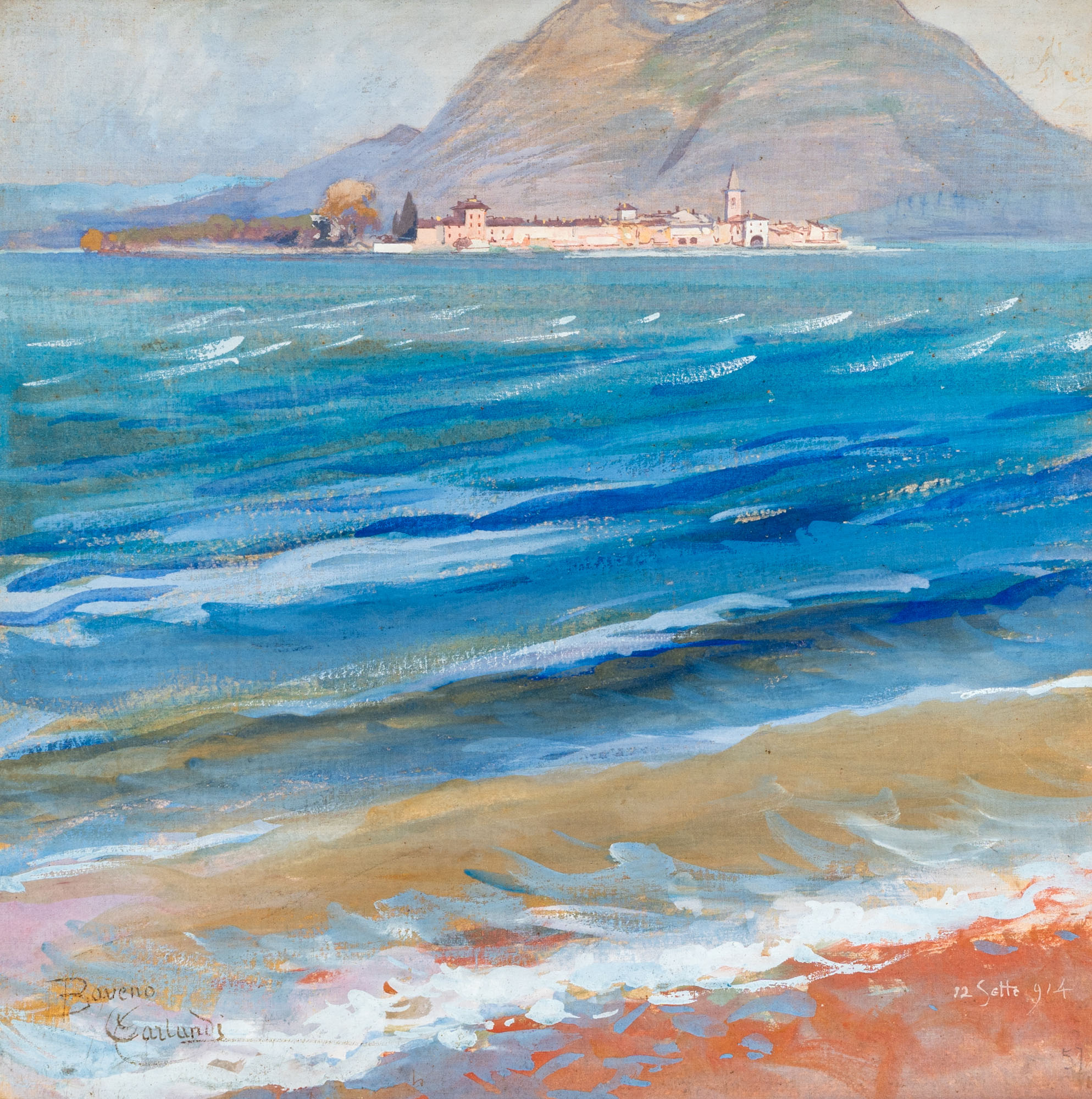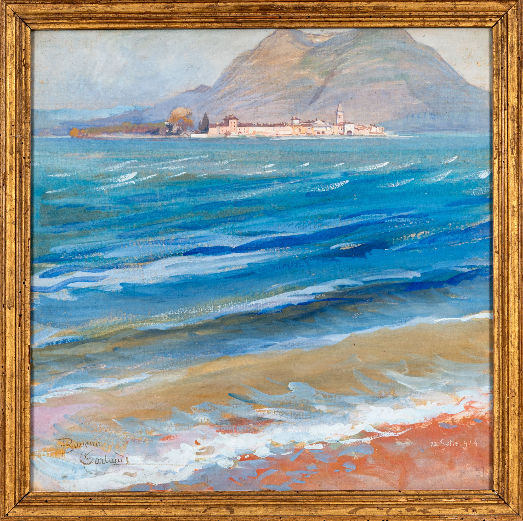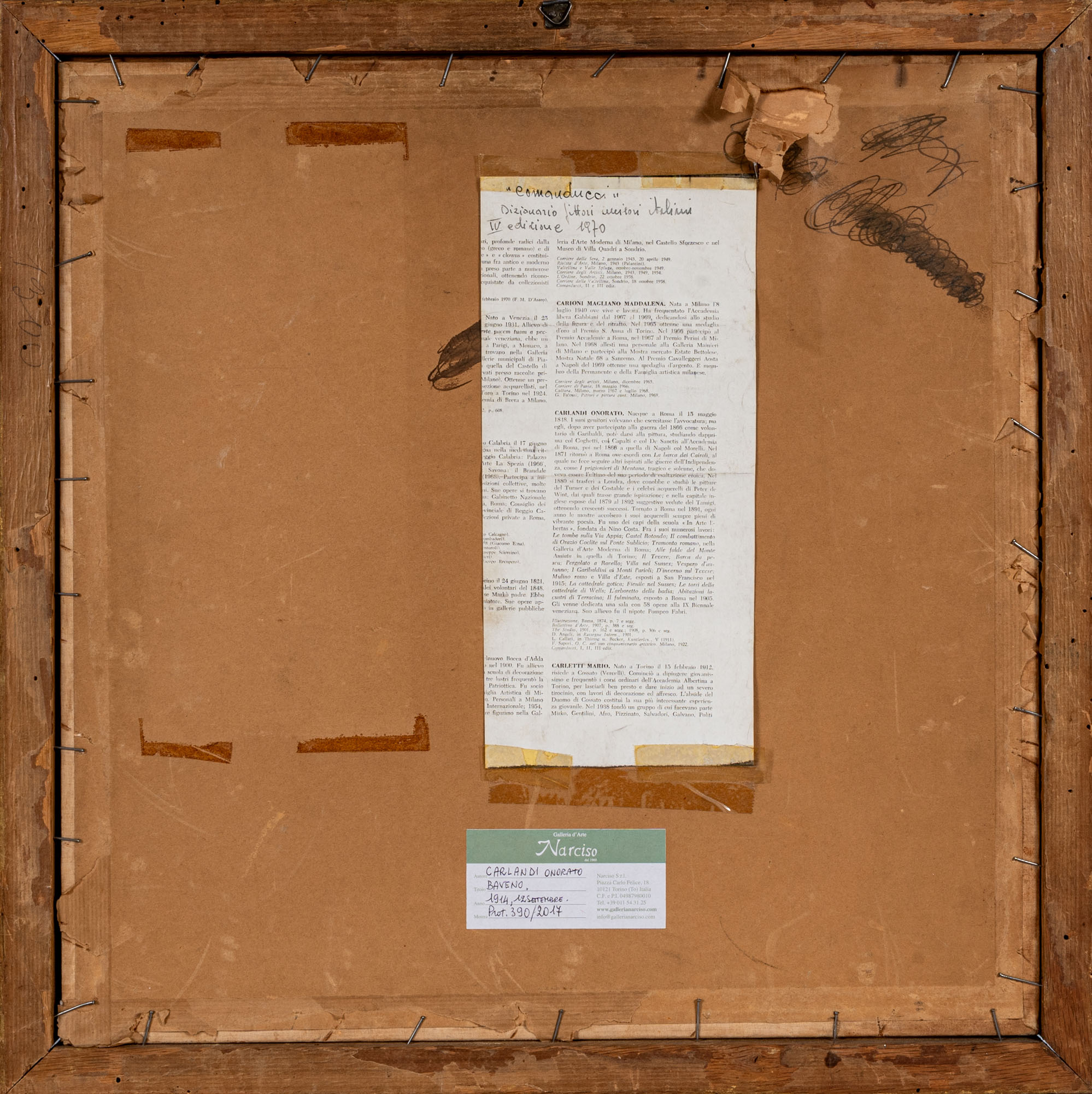 ONORATO CARLANDI(1848 - 1939)Baveno1914Olio su tela applicata su cartone49 x 49 cmFirmato e titolato in basso a sinistra e datato in basso a destraPROVENIENZA:Galleria d'Arte Narciso, Torino (etichetta al retro)Collezione privata, Torino