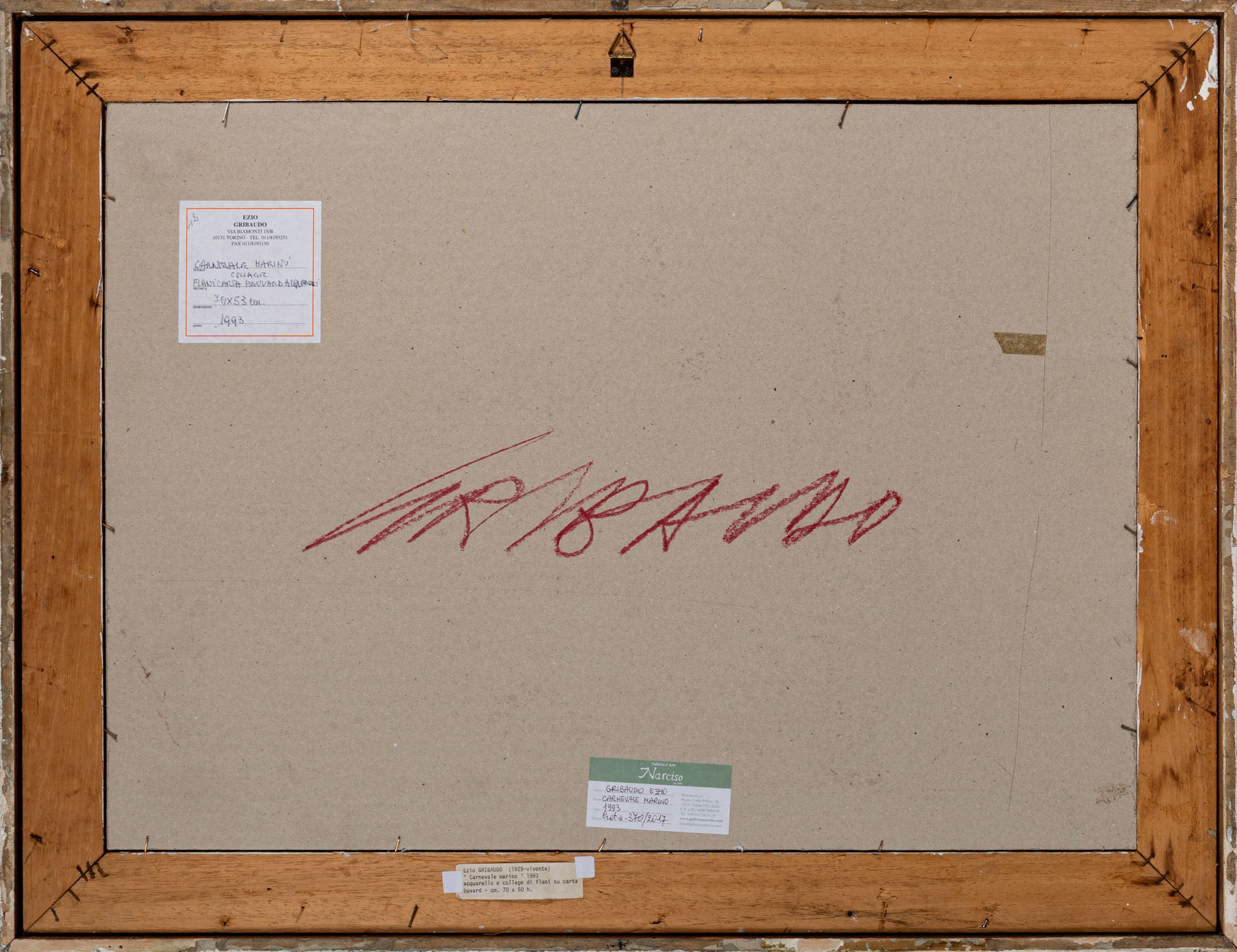 EZIO GRIBAUDO(1929 - 2022)Carnevale marino1993Tecnica mista su carta pressata52,5 x 73 cmFirmata in basso a destraFirma al retroPROVENIENZA:Atelier dell'artista (etichetta al retro)Galleria d'Arte Narciso, Torino (etichetta al retro)Collezione privata, Torino