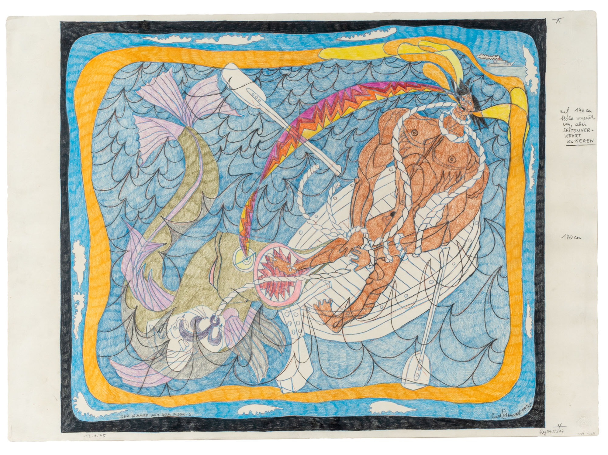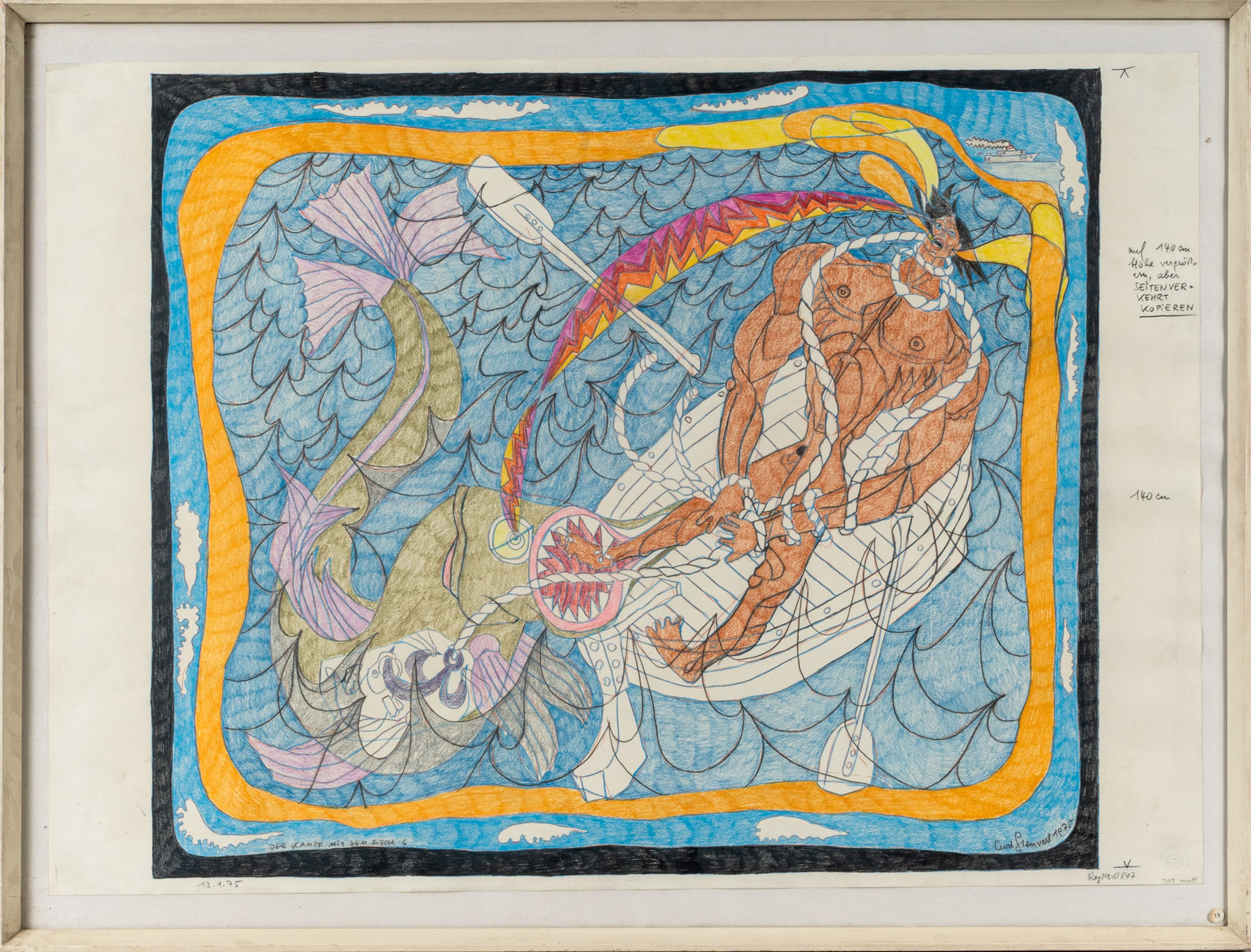 CURT STENVERT(1920 - 1992)Der kampf mit dem fisch 61975Tecnica mista su carta56 x 78 cmFirmata e datata in basso a destra e titolata in basso a sinistraPROVENIENZA:Galleria d'Arte Narciso, Torino (etichetta al retro)Collezione privata, Torino