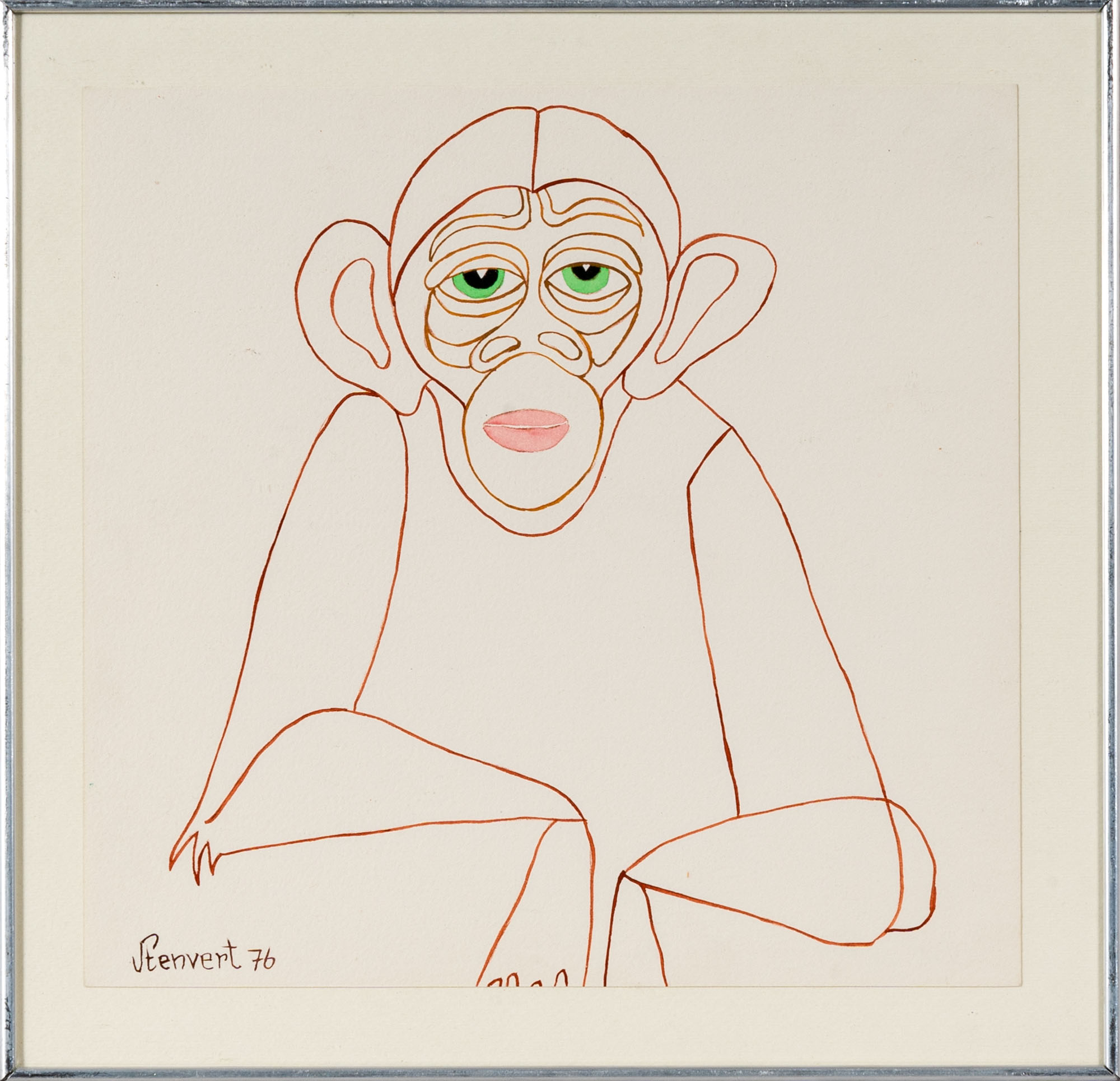 CURT STENVERT(1920 - 1992)Scimmia1976Tecnica mista su carta27 x 28 cmFirmata e datata in basso a sinistraPROVENIENZA:Galleria d'Arte Narciso, Torino (etichetta al retro)Collezione privata, Torino