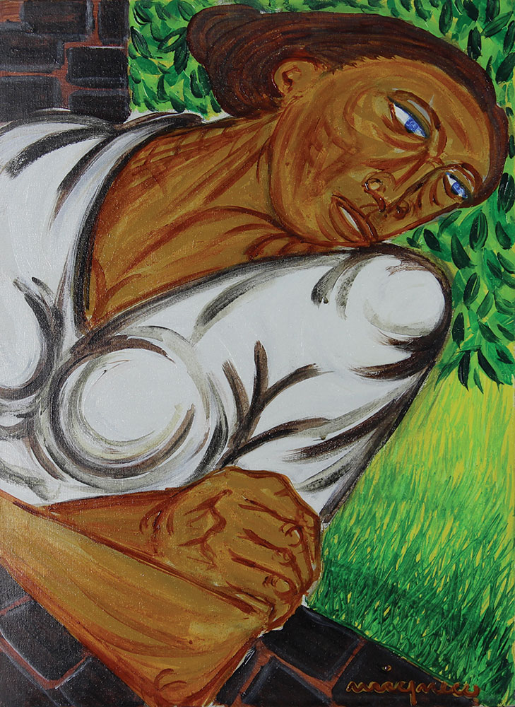 Migneco Giuseppe Contadina olio su tela, cm 40x30 firmato in basso a destra e al retro per autentica, timbro Catalogo Generale Giuseppe Migneco a cura della Galleria Bonaparte Milano con numero di archiviazione al retro, certificato di autenticità dell'artista su fotografia con timbro "Catalogo Generale Giuseppe Migneco" a cura della Galleria Bonaparte Milano