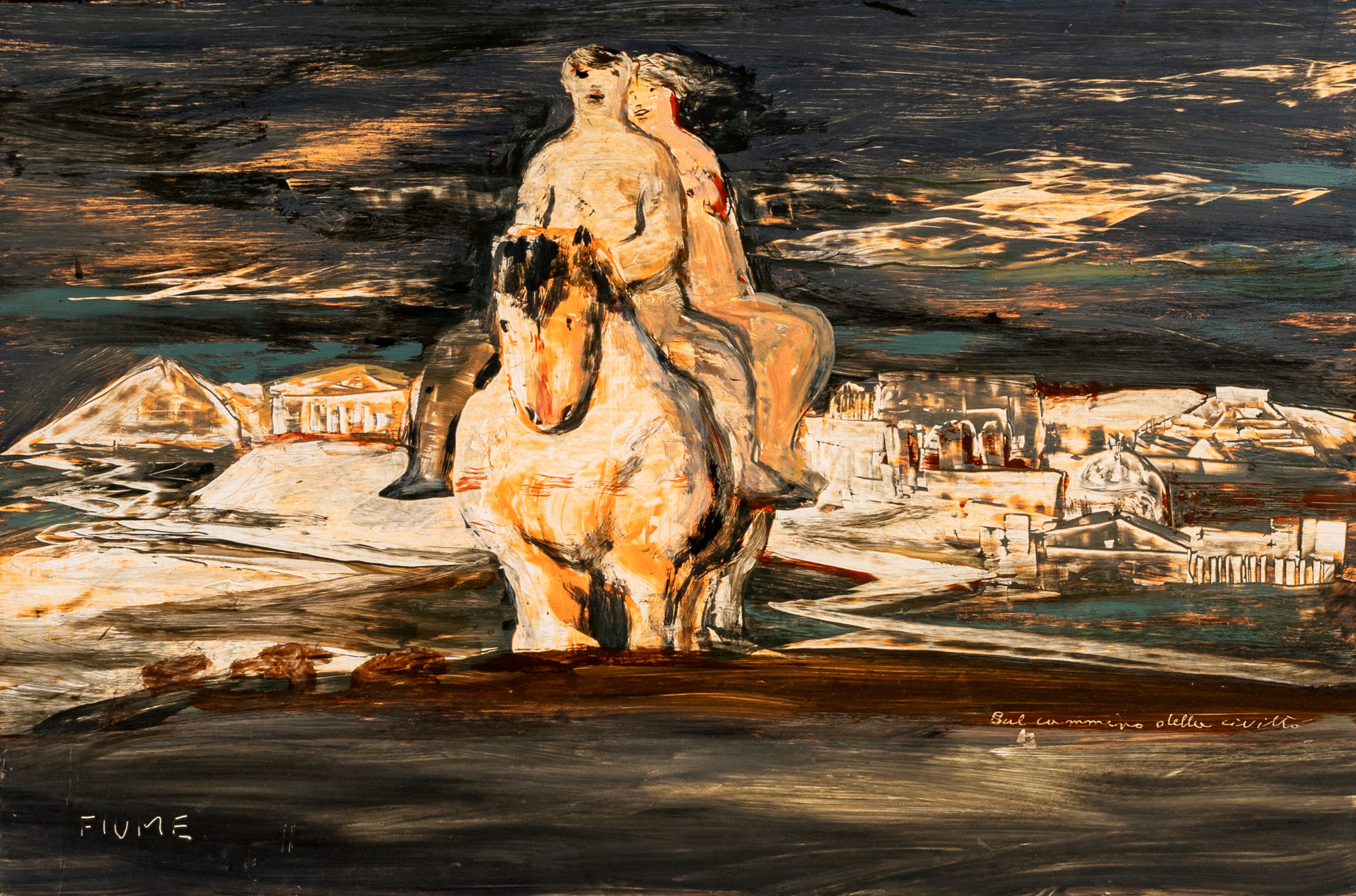 SALVATORE FIUME(1915 - 1997)Sul cammino della civiltàOlio su masonite36 x 54 cmFirmato in basso a sinistra e titolato in basso a destraOpera accompagnata da autentica su fotografia a cura di Laura Fiume, figlia dell'artistaPROVENIENZA:Atelier dell'artistaCollezione privata (acquistato direttamente dall'artista negli anni '70)Sotheby's Milano, asta di Arte Moderna e Contemporanea, 22 novembre 2005, lotto 42Collezione privata, Como