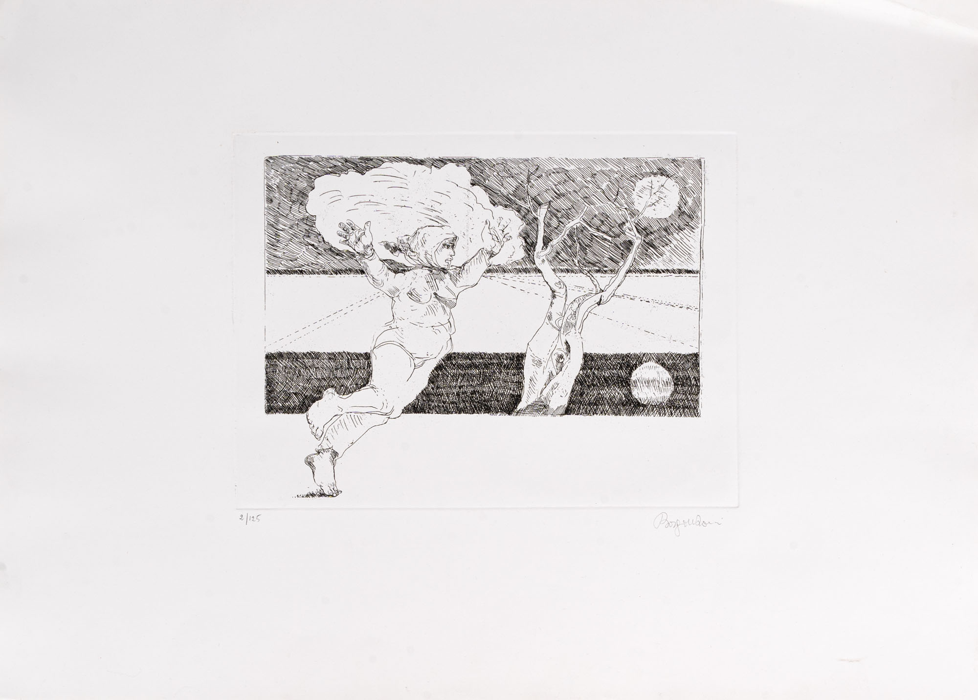 ALDO BERGONZONI(1899 - 1976)Senza titoloAcquaforte, es. 2/12526,5 x 36 cm (lastra)50 x 69,5 cm (foglio)Firmata a matita in basso a destra e numerata in basso a sinistraPROVENIENZA:Collezione privata, Imola