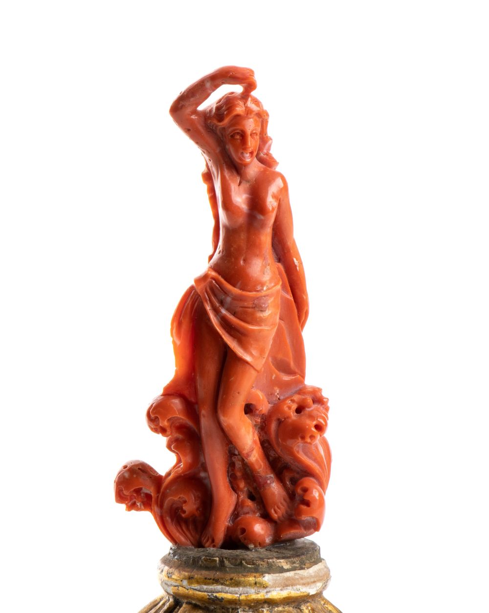 In corallo cerasuolo (Corallium elatius) scolpito a raffigurare una Venere posta sopra le onde.