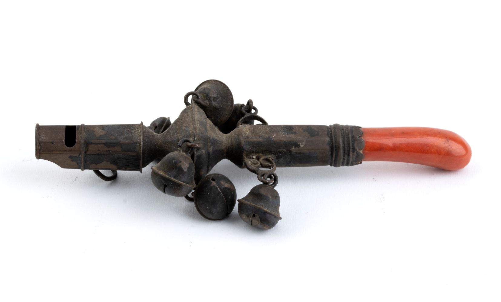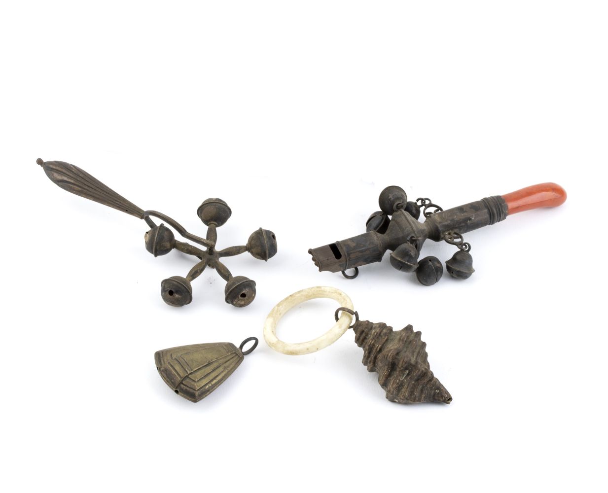 Lotto di sonagli italiani in argento XIX secolo a) con manico in corallo...