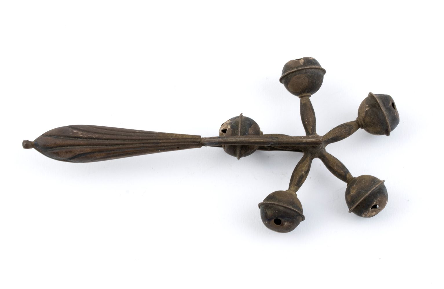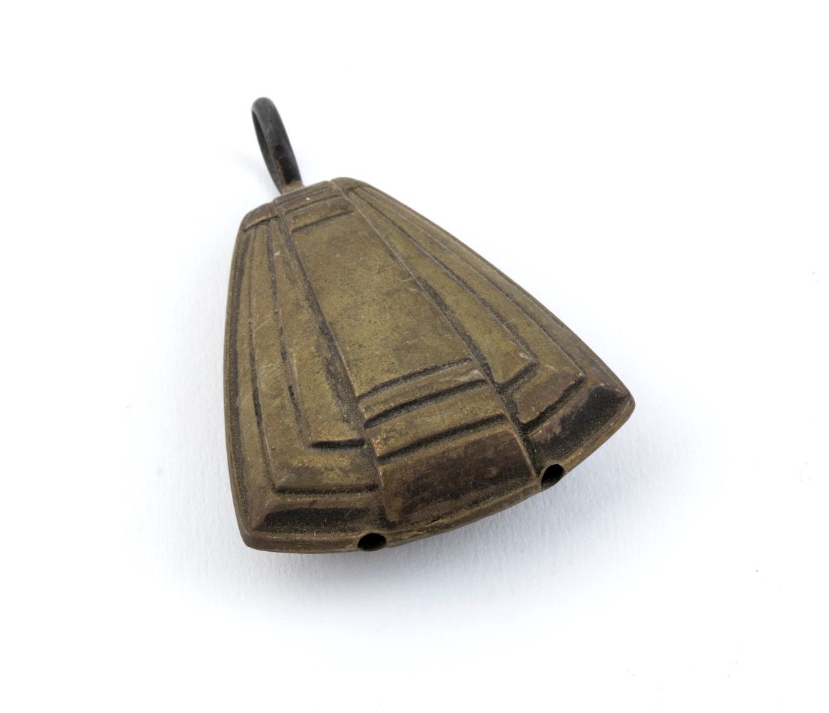 b) in argento dorato con campanelli girevoli, apparentemente non punzonato.