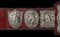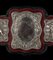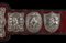 In cuoio nei toni del rosso e del nero con sei placchi laterali in argento con raffigurazioni di lotta ed una grande centrale in argento con scudo centrale in oro. Argento 925/1000 e oro 375/1000 (9ct), serie completa di marchi Londra 1898-1899, argentiere Goldsmiths & Silversmiths Co (William Gibson & John Lawrence Langman), Regent street London.