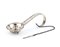 di forma circolare con bordo traforato e manico con presa a riccio. Punzonata con marchi non identificatio.