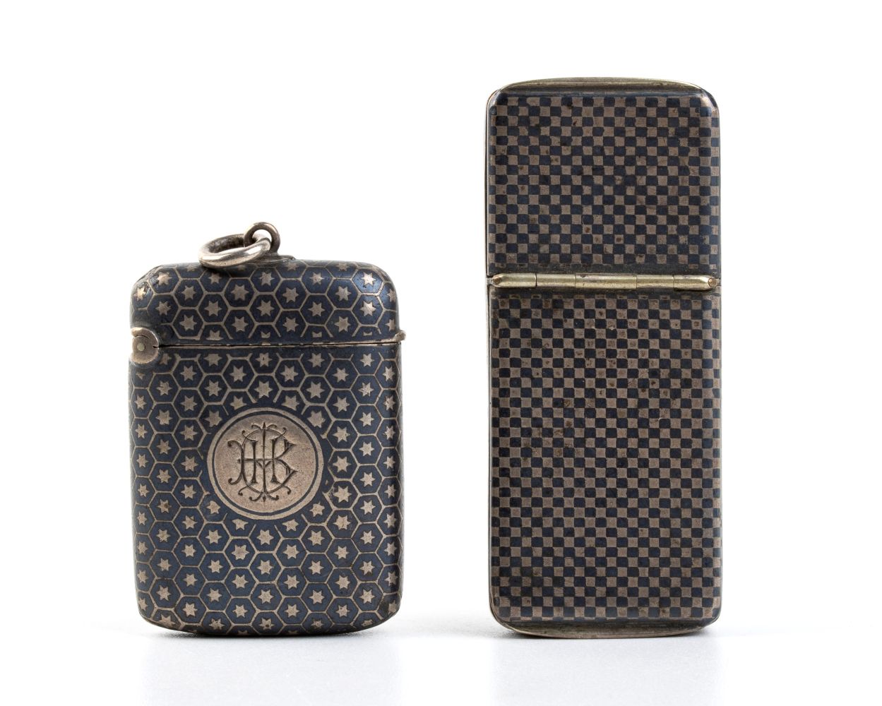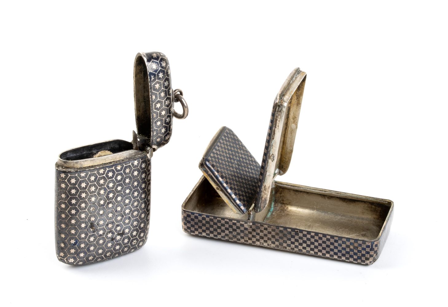 Due portafiammiferi in argento niellato Francia e Austria, XIX secolo