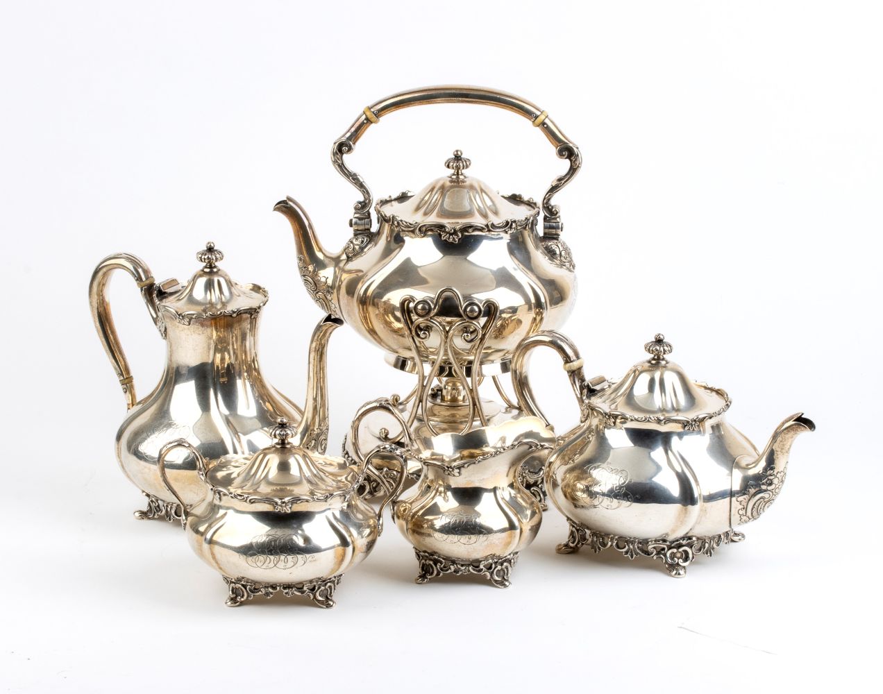 Servizio da tè e da caffè russo in argento Inizio XX secolo composto da...