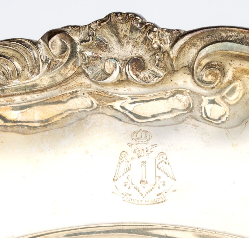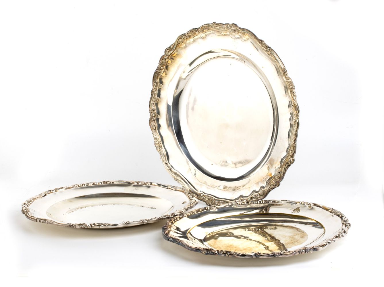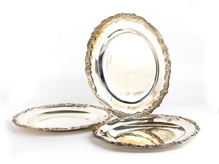 Tre vassoi italiani in argento inizio XX secolo Diametro 33 e 35,5 cm. Peso...