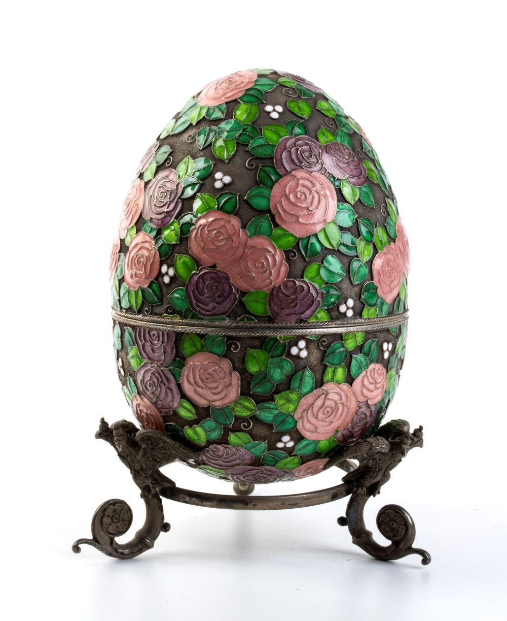 Grande uovo in argento e smalti cloisonnè Manifattura Russa (?) del XX secolo