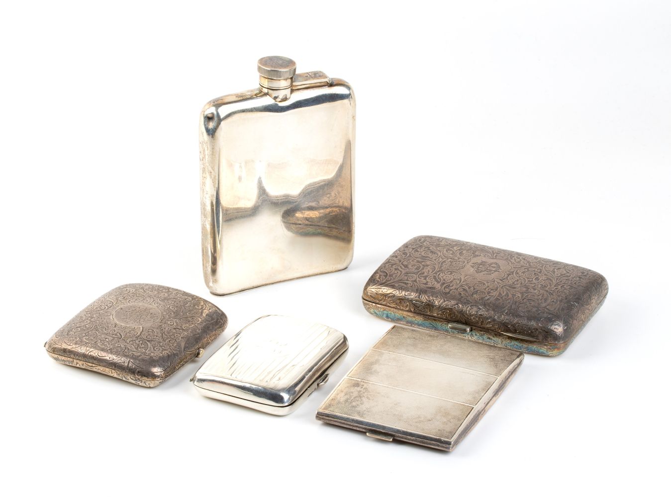 Lotto di cinque oggetti inglesi in argento Fine XIX inizio XX secolo