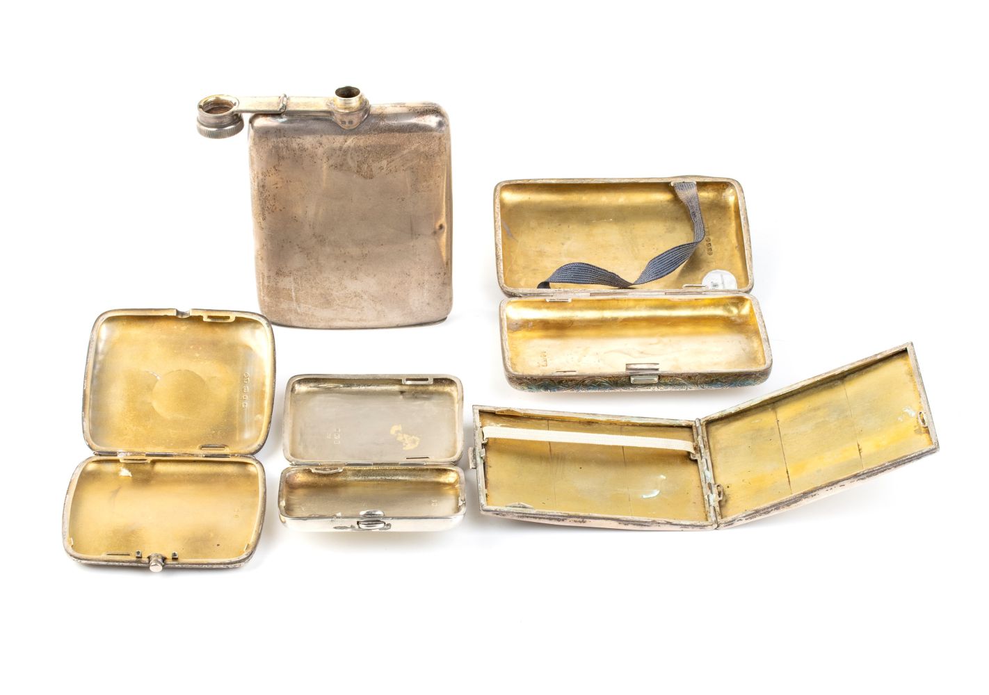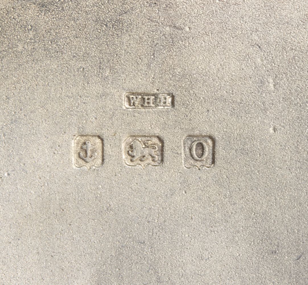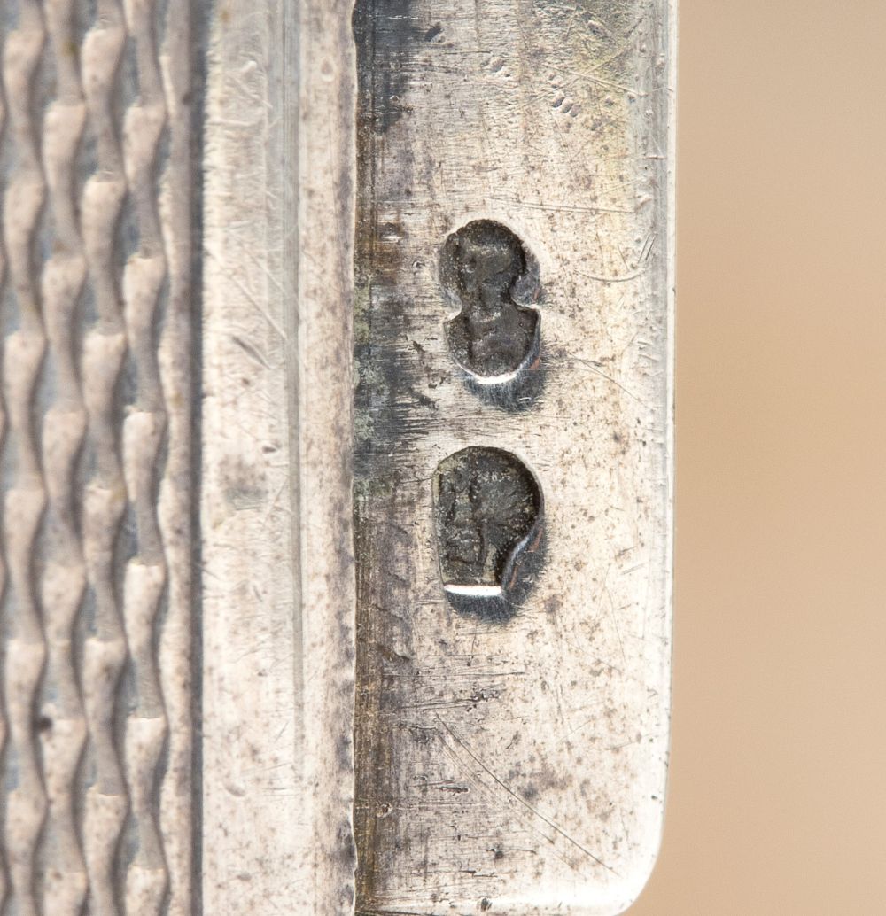 d) portasigarette in argento 925/1000 con monogramma, serie completa di marchi Birmingham 1913-1914, argentieri William Hair Haseler Ltd.