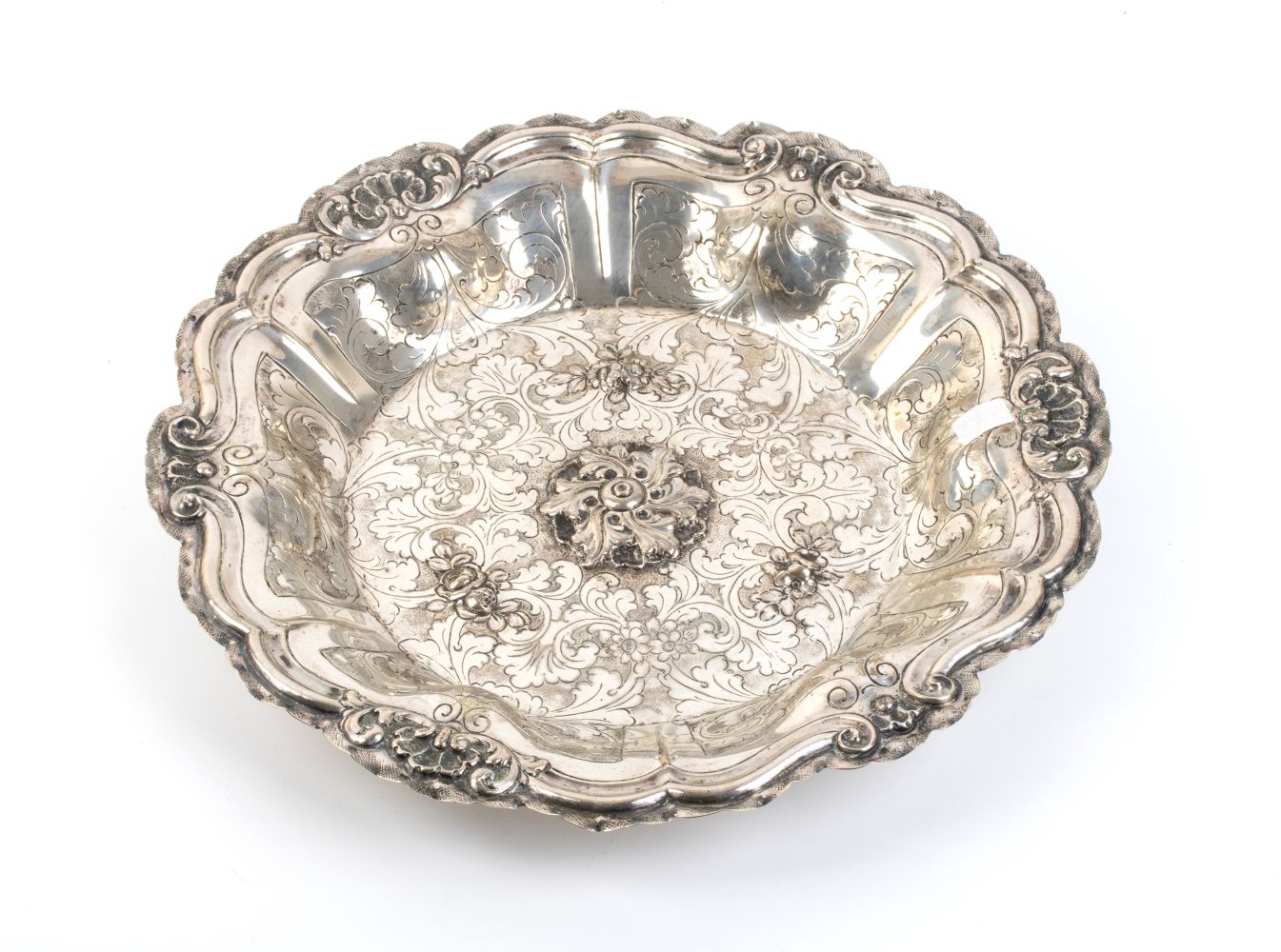Vassoio italiano in argento Inizio XX secolo Diametro x altezza: 36 x 4,5 cm....
