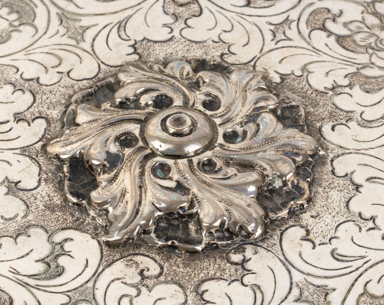 di forma circolare, cesellato con motivi floreali. Apparentemente non punzonato