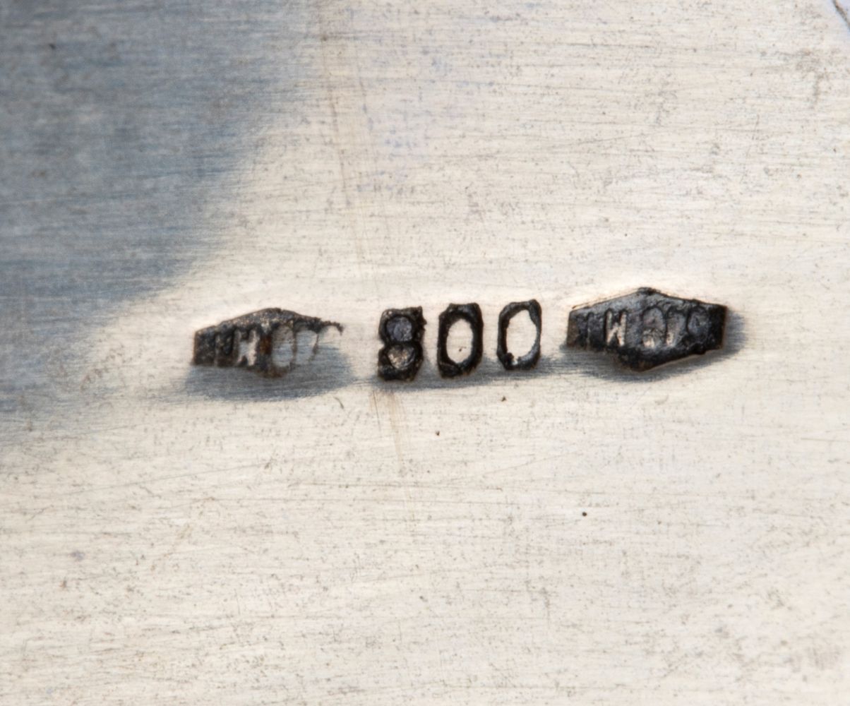 di forma quadrata con motivi a foglia. Argento 800/1000, punzonato "800 - 540 MI".