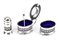 con bordo traforato a decori geometrici e contenitori in vetro blu. Argento 925/1000, serie completa di marchi Birmingham 1921-1922, argentieri Docker & Burn.