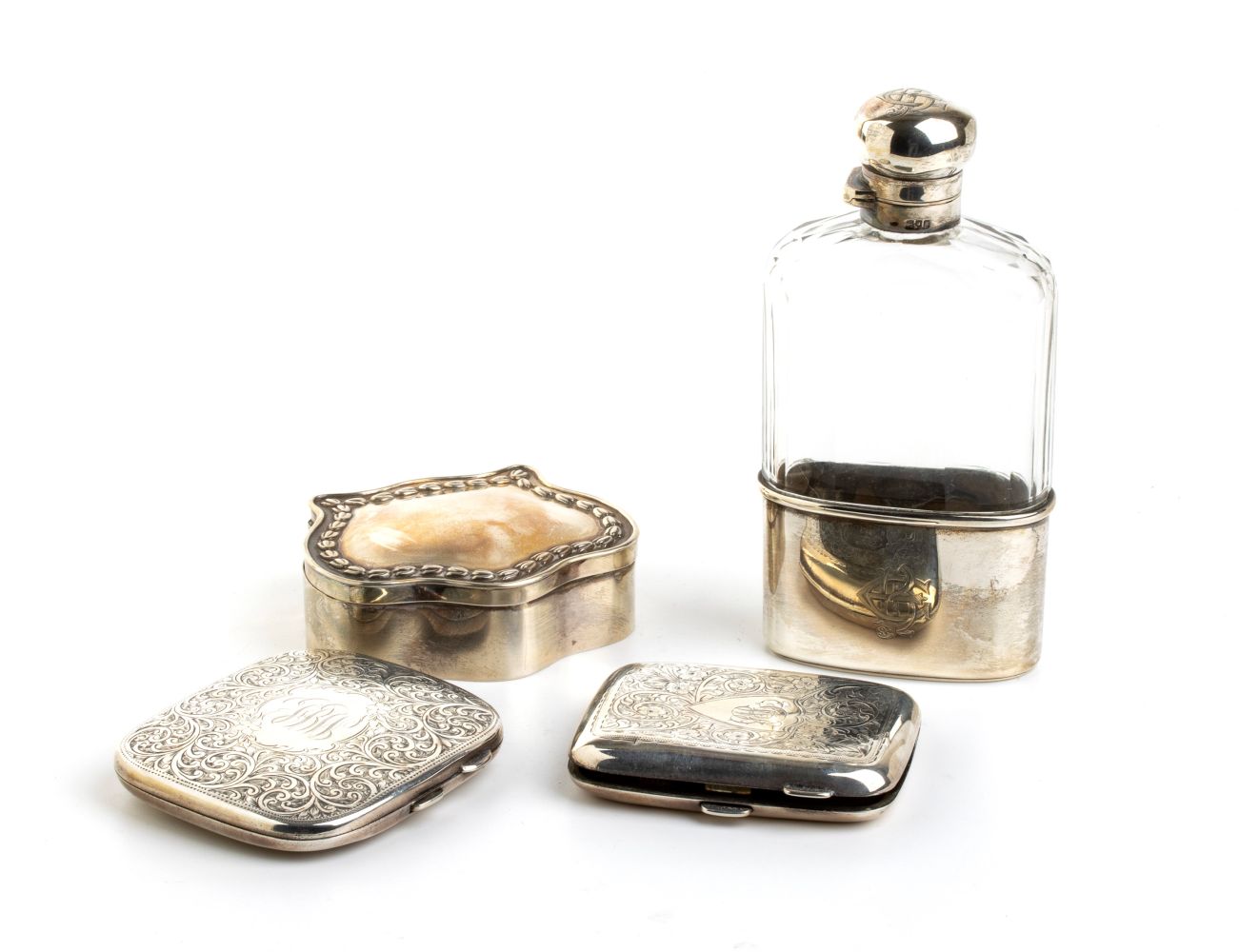 Lotto di quattro argenti inglesi Inizio XX secolo a) fiaschetta da liquore in...