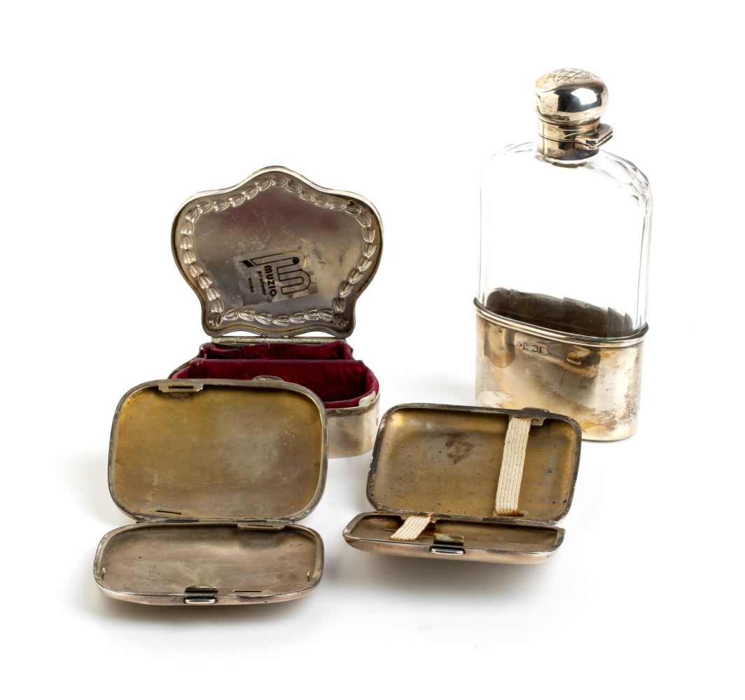 c) portasigarette in argento 925/1000 con monogramma, serie completa di marchi Birmingham 1910-1911, argentiere non identificato.