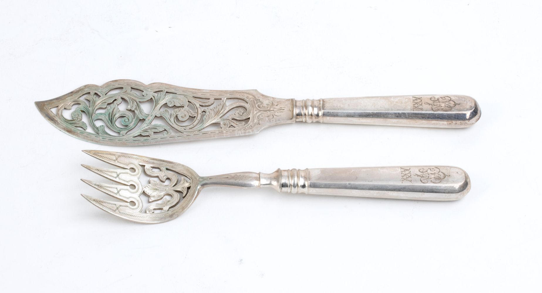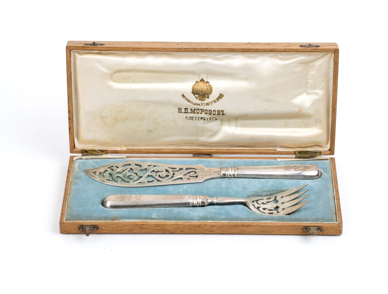 Coppia posate da pesce Russe in argento San pietroburgo 1899-1908