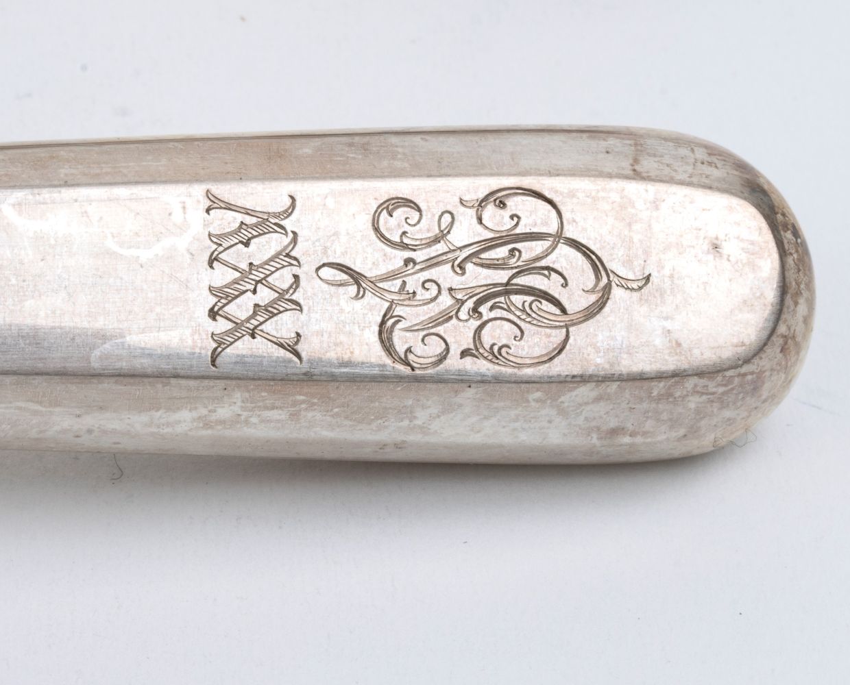 Peso delle posate in argento 216,5 gr. Peso complessivo di scatola 729 gr.