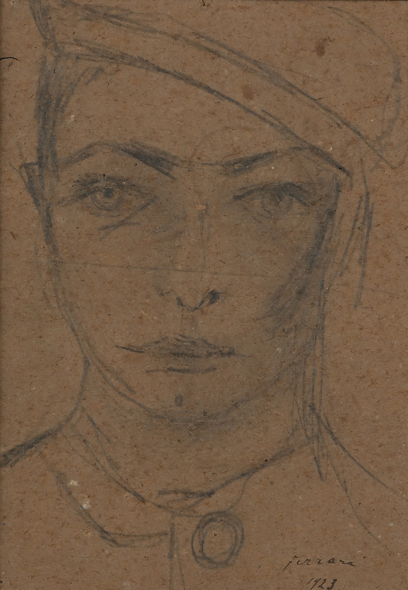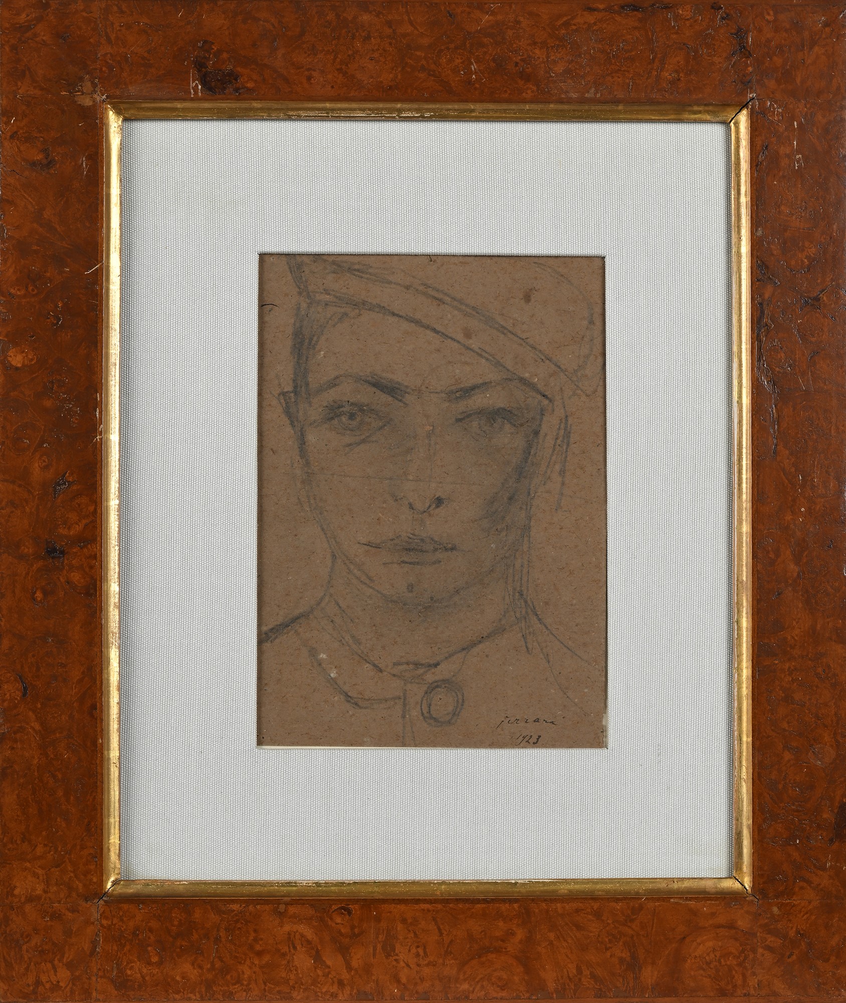 Filippo De Pisis Ferrara 1896-Milano 1956 Ritratto di Giovane 1923 Matita su cartoncino Firma e luogo "Ferrara 1923" cm 24x17 - in cornice cm 48x41