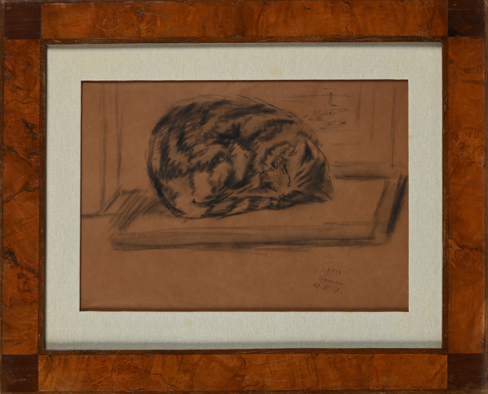 Filippo De Pisis Ferrara 1896-Milano 1956 Gatto accucciato 1931 Carboncino su carta Firma e data "De Pisis, Roma 19/5/1931" cm 26,7x42 - con cornice cm 44x54