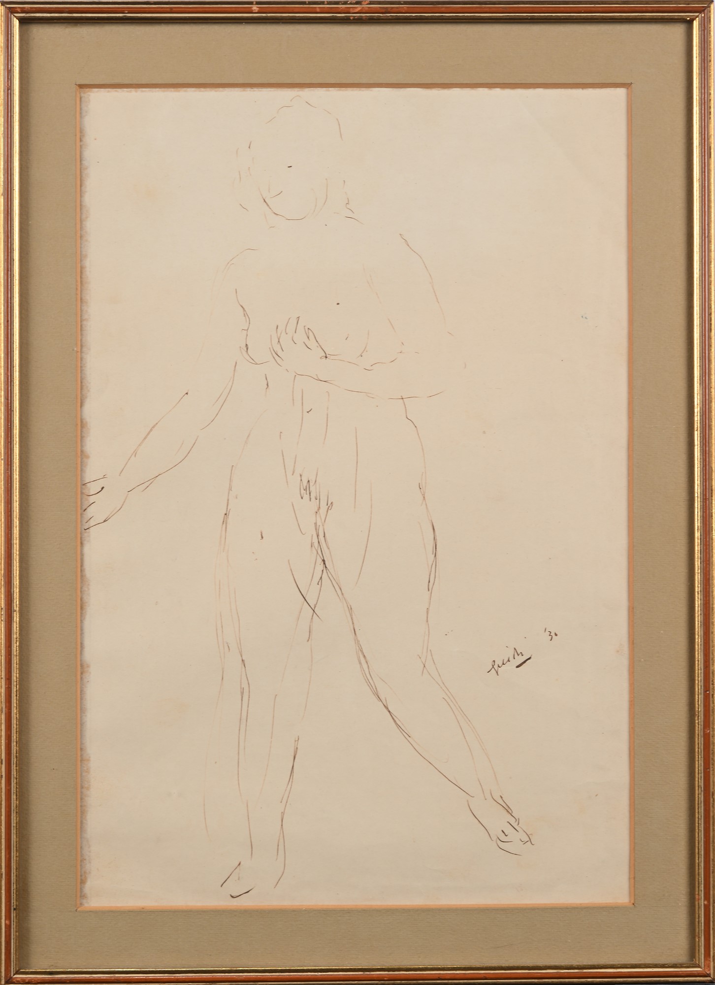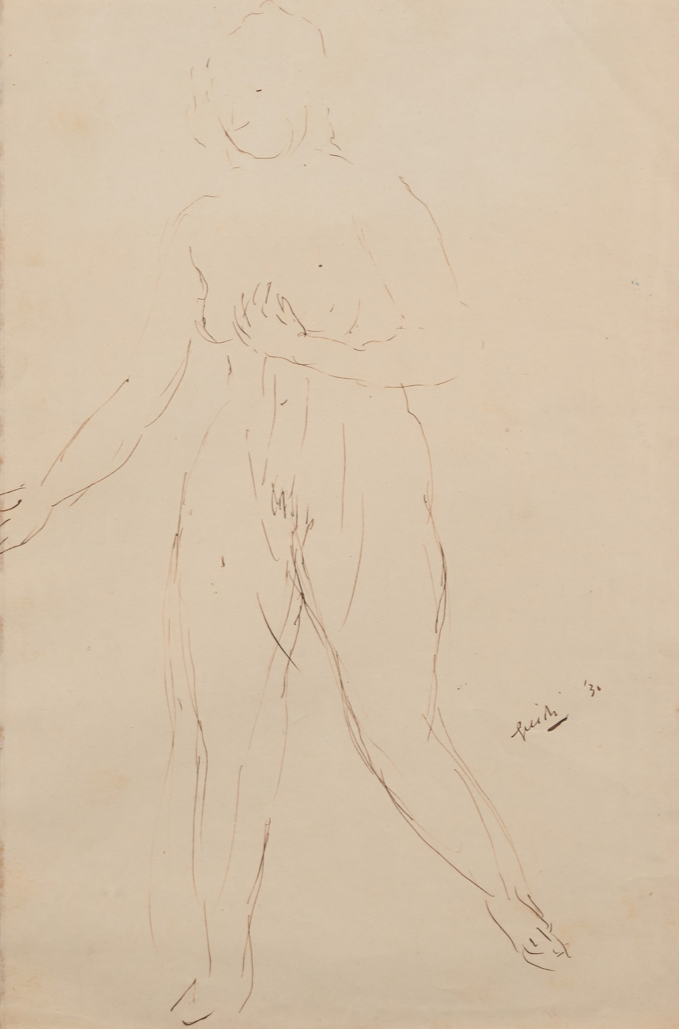 Virgilio Guidi Roma 1891-Venezia 1984 Studio di figura femminile 1930 China su carta Firma e data "Guidi '30" L'Italia Letteraria, Anno XII, 19 Novembre 1933 cm 33x23 - con cornice cm 40x29