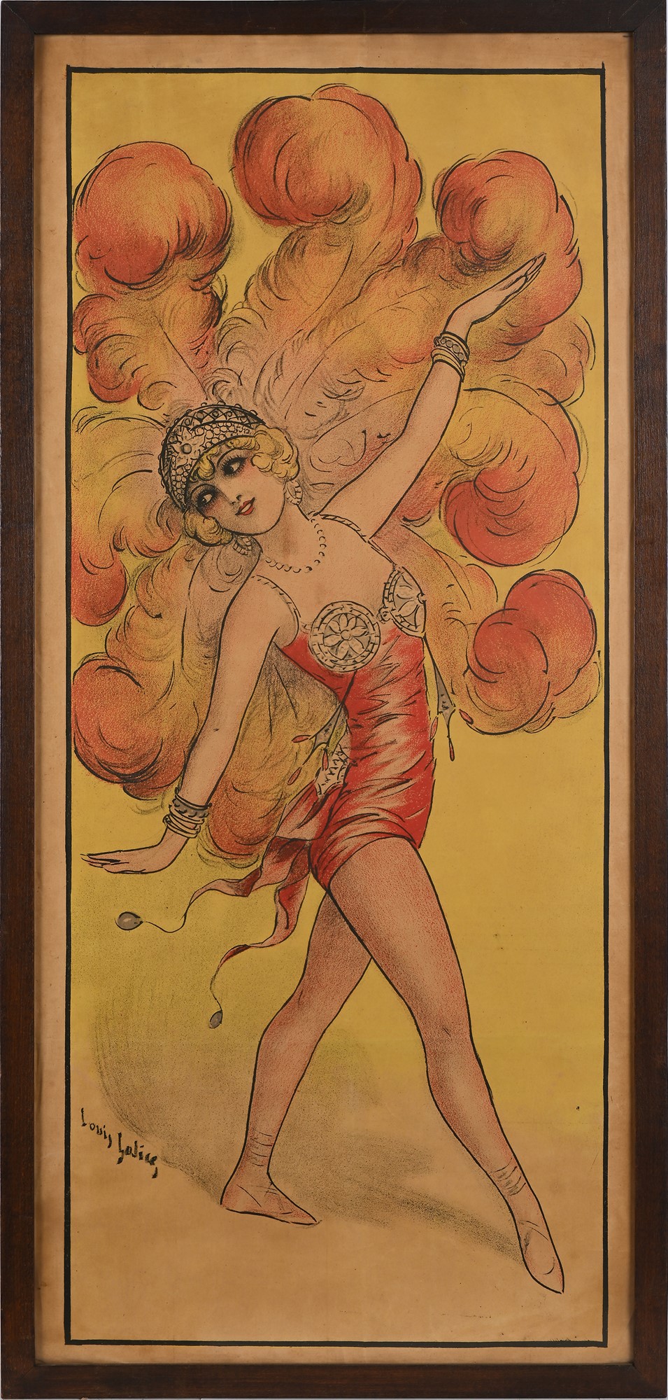 Louis Galice 1864-1935 Ballerina Litografia a colori cm 79x35 - in cornice cm 83x39
