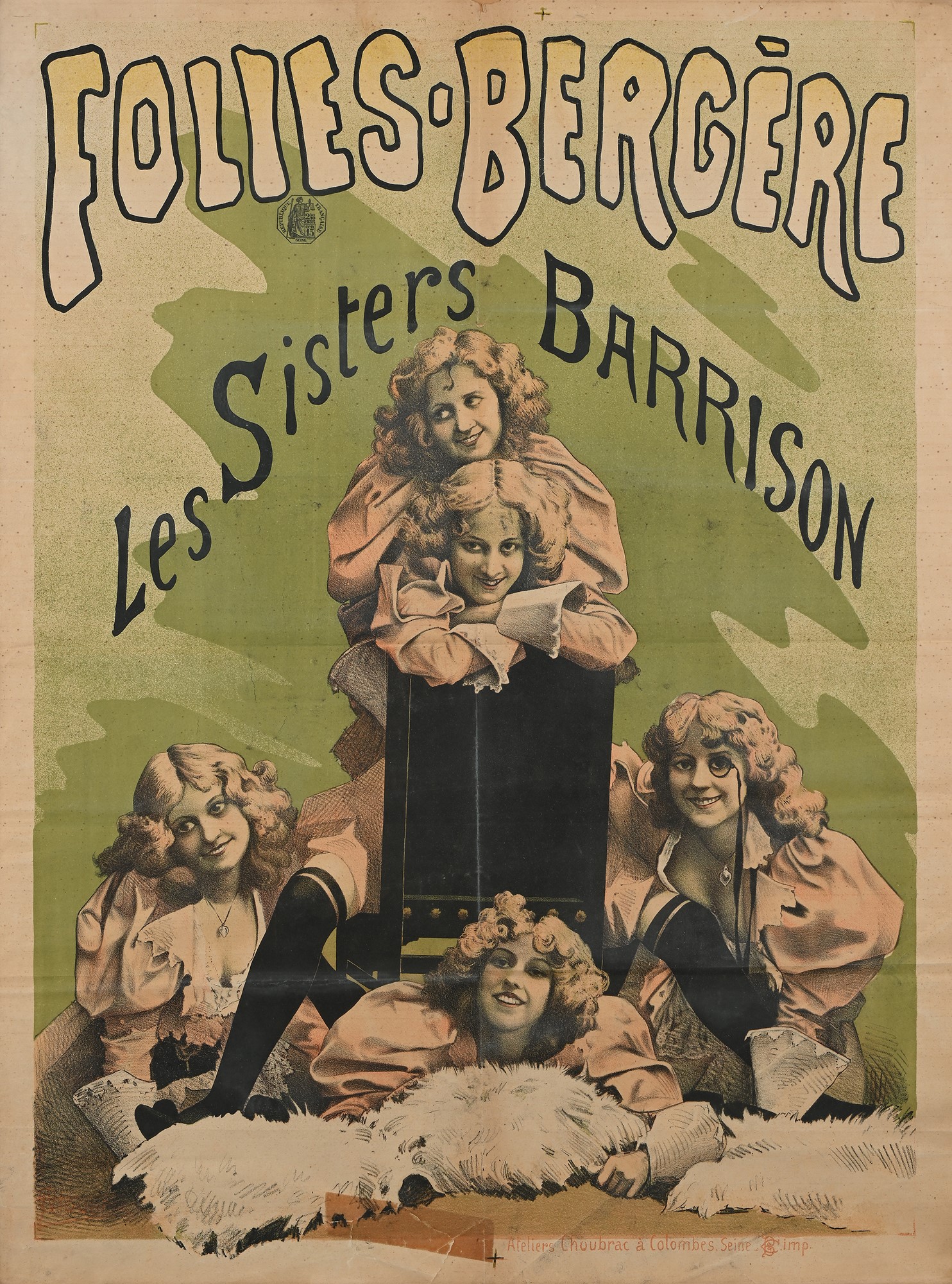 Alfred Choubrac Parigi 1853-Parigi 1902 Folies Bergere - Les sisters Barrison Litografia a colori cm 80x60 - in cornice cm 82,5x63,5