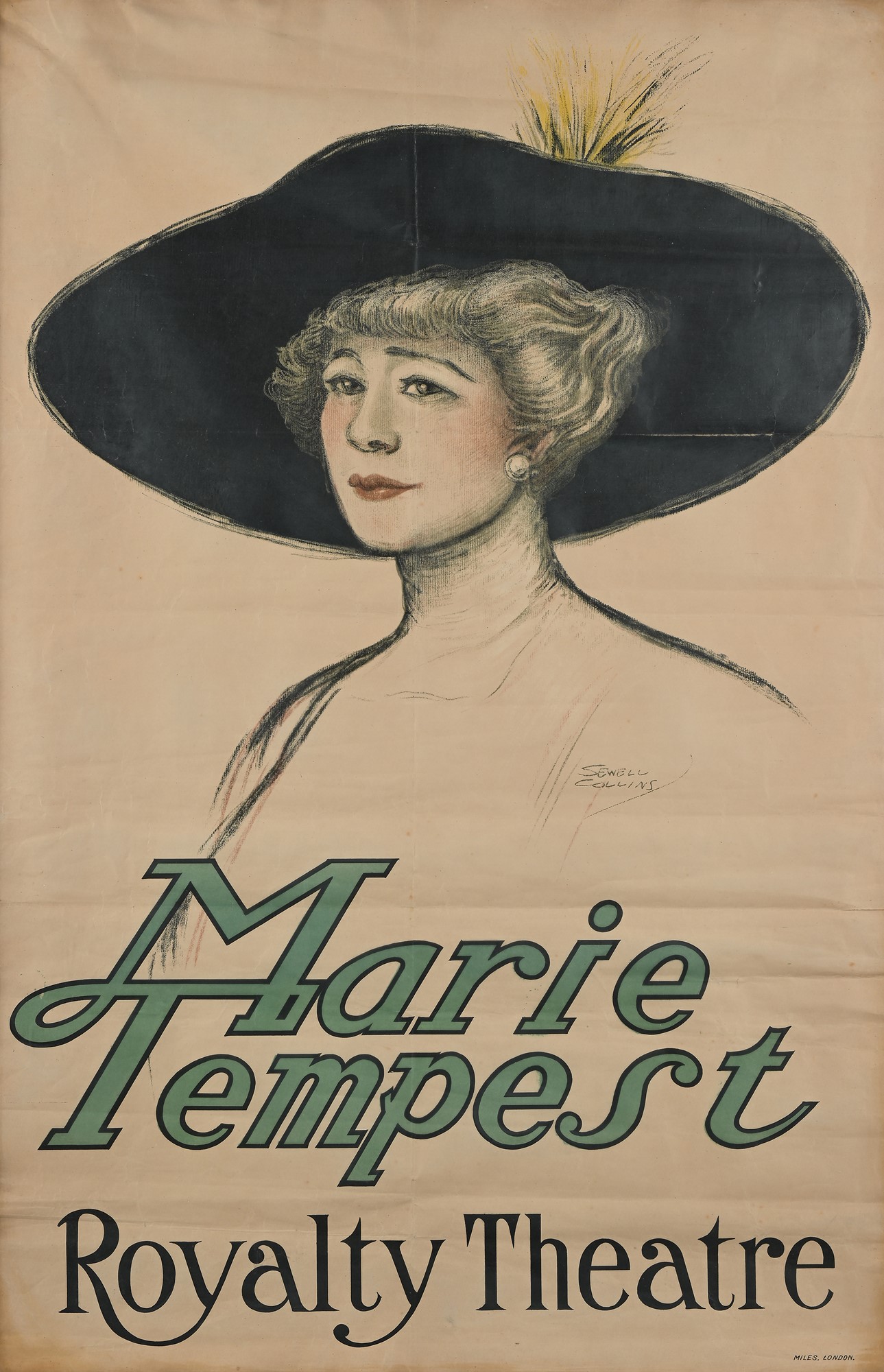 Sewell Collins 1876-1934 Marie Tempest Royalty Theatre Litografia a colori cm 75x49,5 - con cornice cm 78x52,5