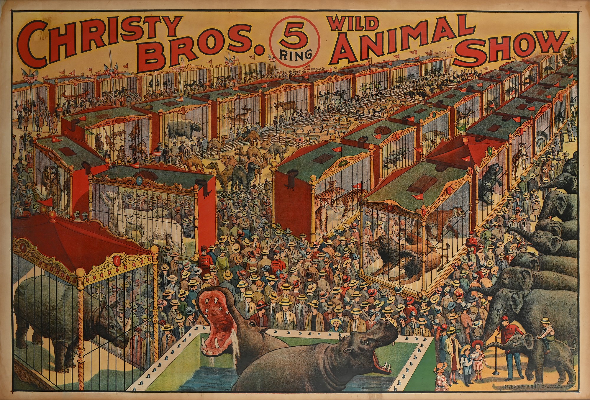 Christy Bros Wild Animal Show Litografia a colori cm 71x107 - in cornice cm 76,5x112