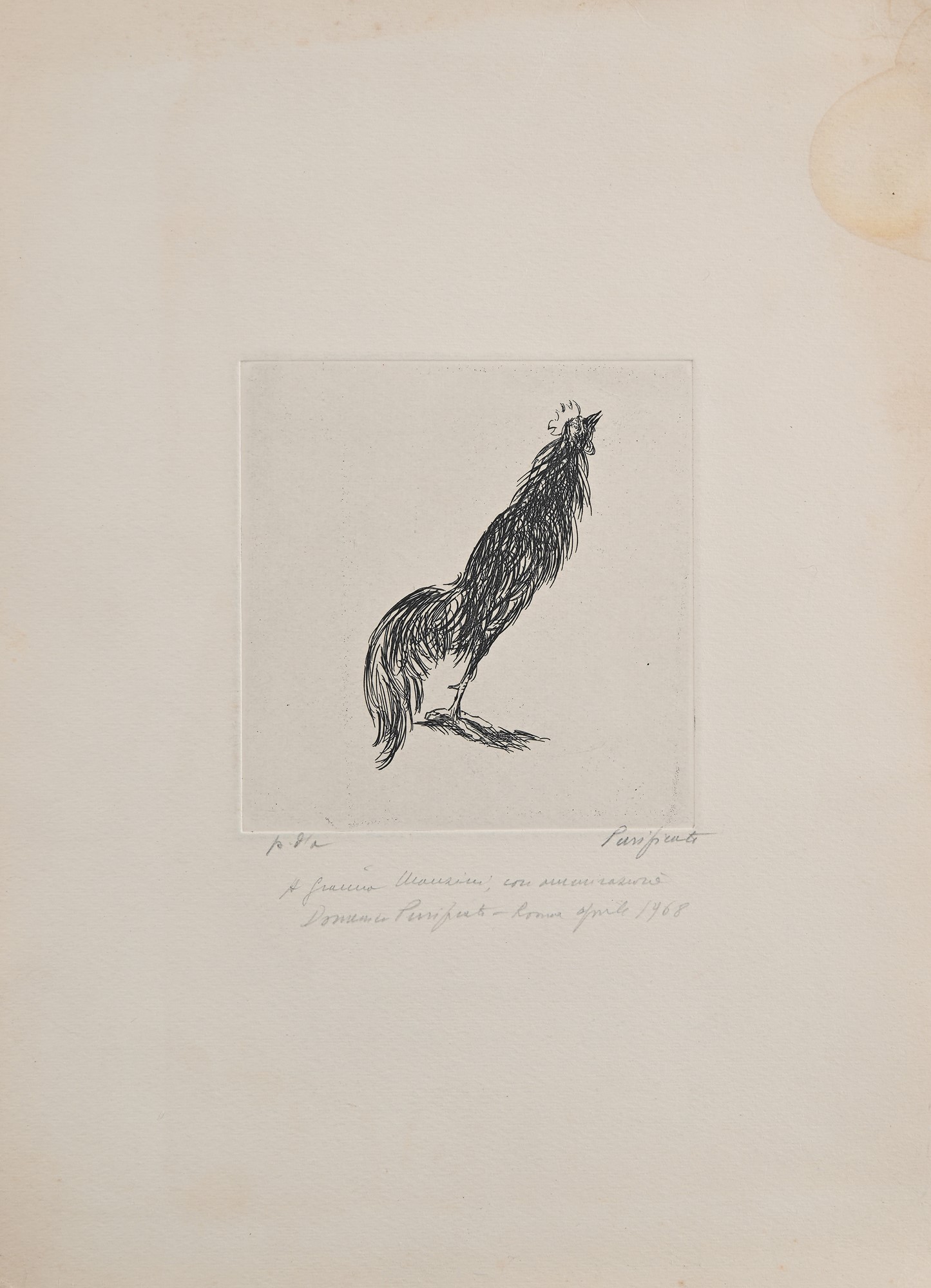 Domenico Purificato Fondi 1915-Roma 1984 Gallo 1968 Acquaforte Firma, numerazione, dedica e data in basso "Purificato p.d.a. A Gianna Manzini. 1968" cm 35,2x25,2