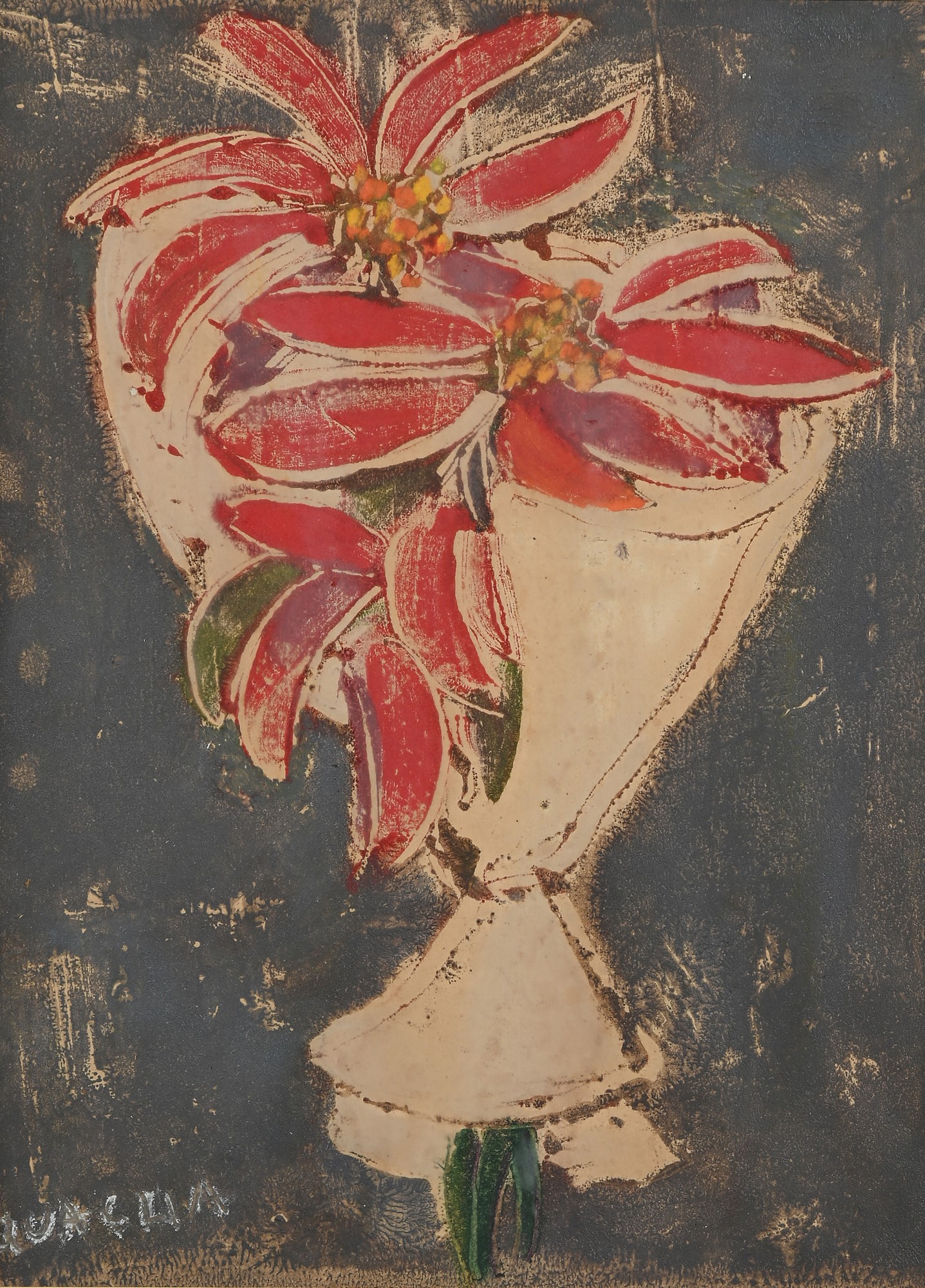 Carlo Quaglia Terni 1903-Roma 1970 Stelle di Natale Olio su carta Firma in...
