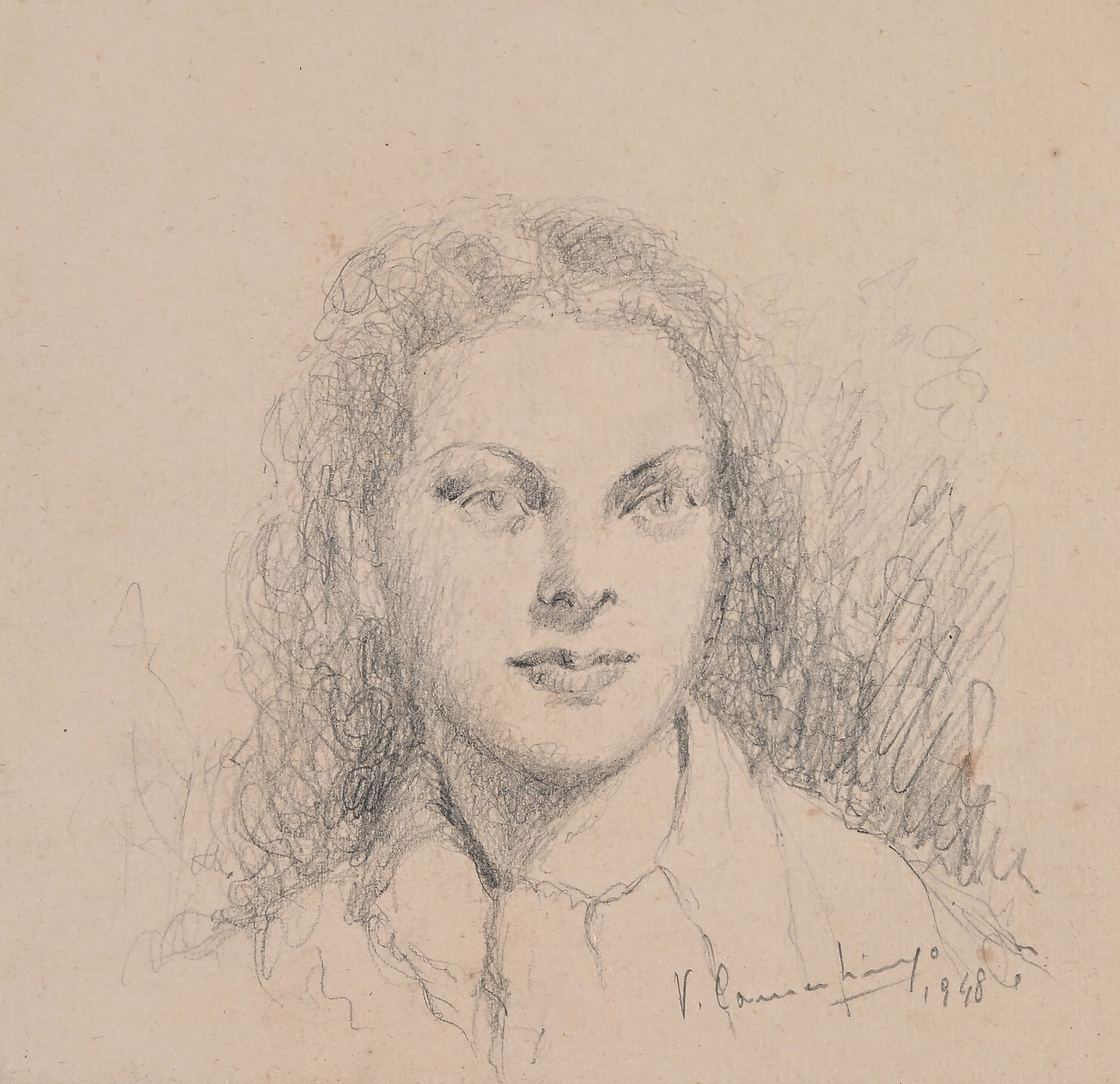 Vincenzo Camerlingo XX secolo Lotto di 2 ritratti 1948 Matita su carta Entrambi firmati e datati "V. Camerlingo 1948" cm 14x14,5 / cm 16x16