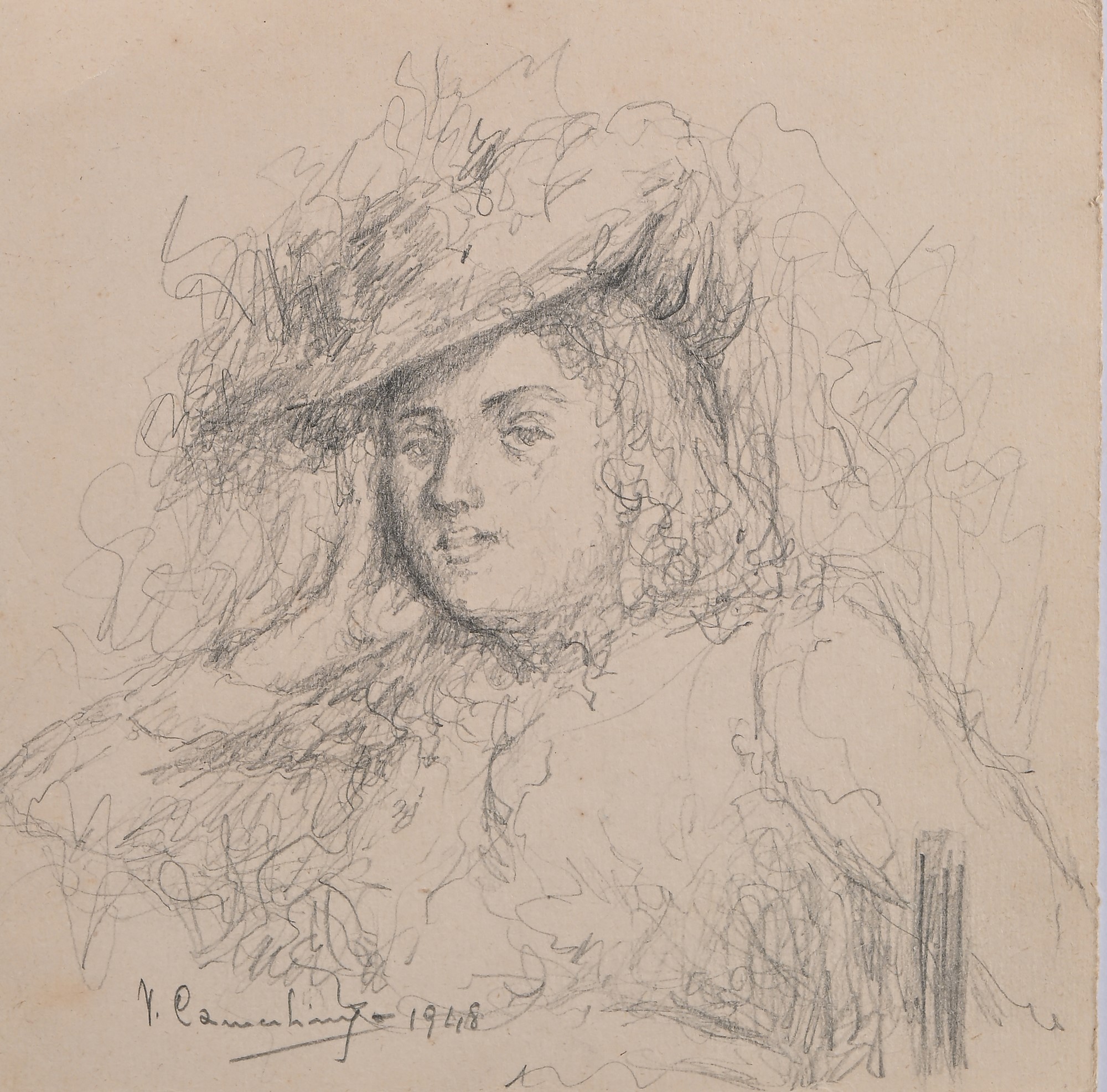 Vincenzo Camerlingo XX secolo Lotto di 2 ritratti 1948 Matita su carta...