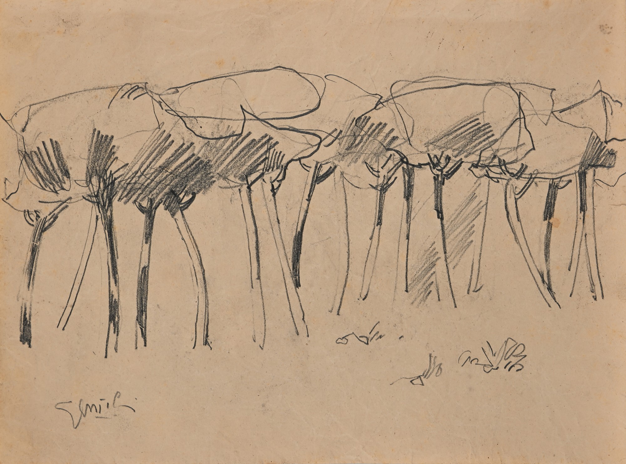 Anonimo del XX secolo Alberi Matita su carta Firma in basso a sinistra...