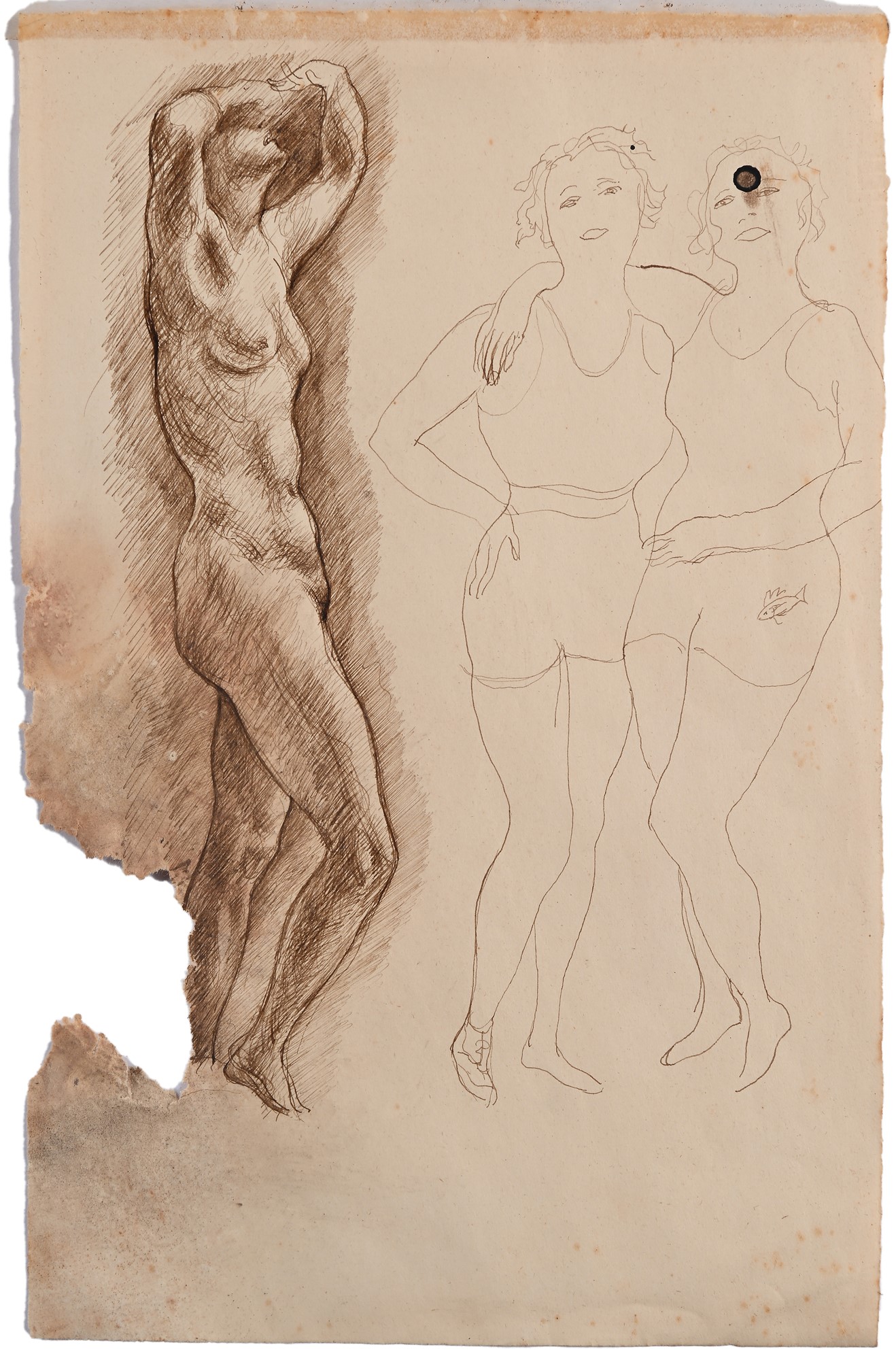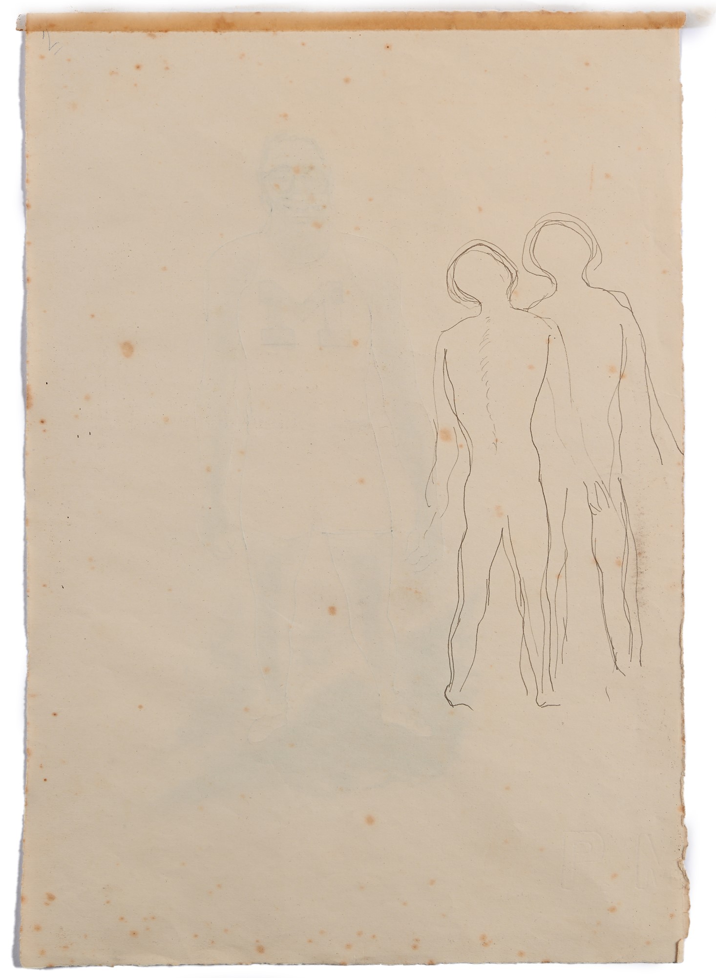 2- Studio di tre figure (due abbracciate ed una in piedi), china su carta, cm 32x20,5