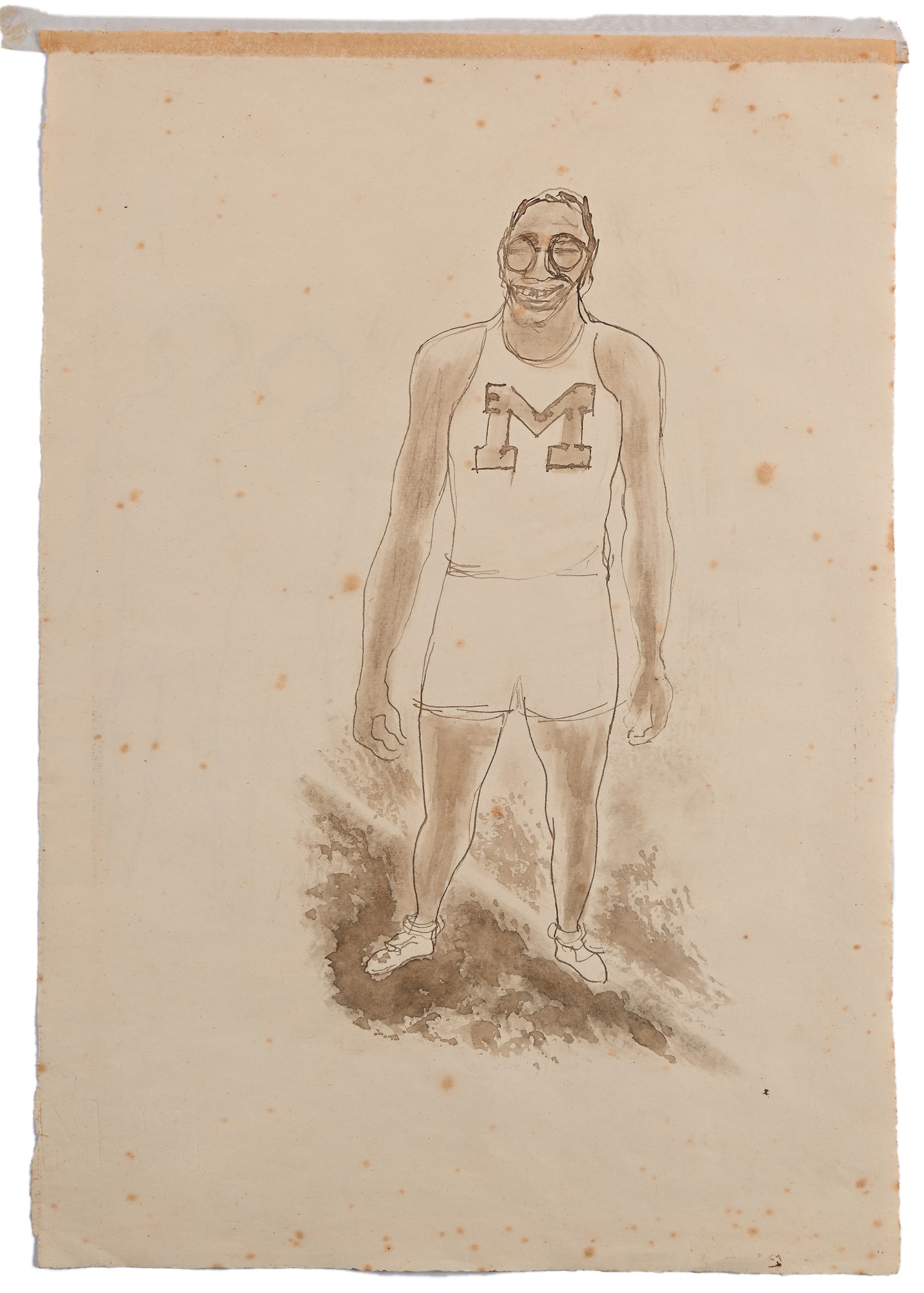1- Atleta, china e acquarello su carta, cm 32,2x22,2. Al verso reca Studio di figure a china.