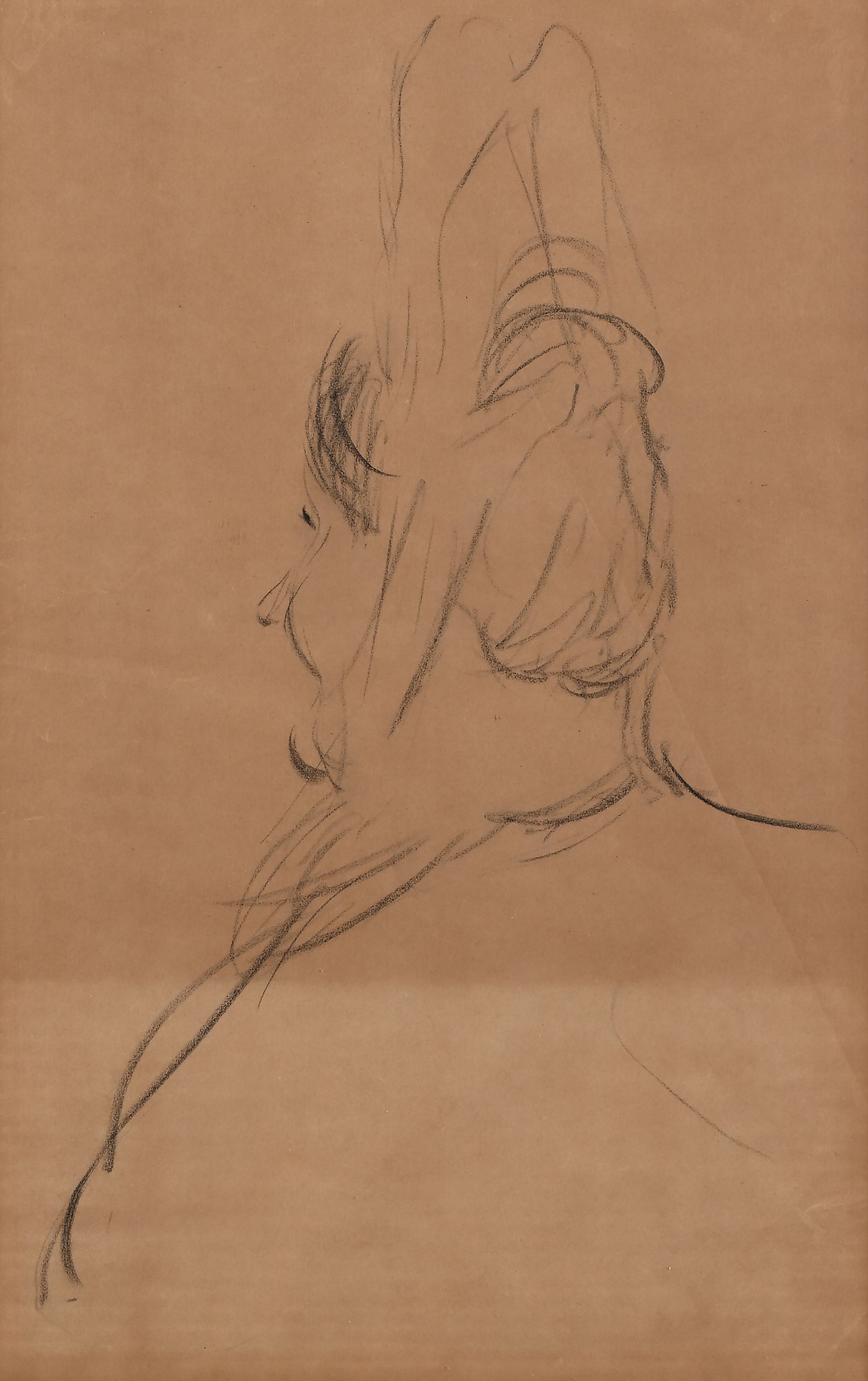 Anonimo del XX secolo Donna con cappello Carboncino su carta cm 42x26,5 - con cornice cm 65x50