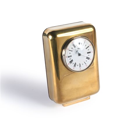 Orologio da tavolo al quarzo in ottone, Ritz cassa squadrata ad angoli arrotondati e quadrante a numeri romani cm 17x11,5x6