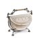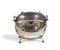 Biscottiera vittoriana in sheffield, Regno unito, fine del XIX secolo corpo semisferico con palmette e ghirlande minuziosamente incise, motivi ripetuti su i due elementi a mezzaluna incernierati lungo la linea di diametro posti come chiusura; interno separato da un elemento traforato, struttura sostenuta da montanti arcuati con piedi a forma di conchiglia stilizzata; presa superiore ad andamento tortile, trattenuta da supporti a motivi naturalistici. Lievi difetti e piccole mancanze
