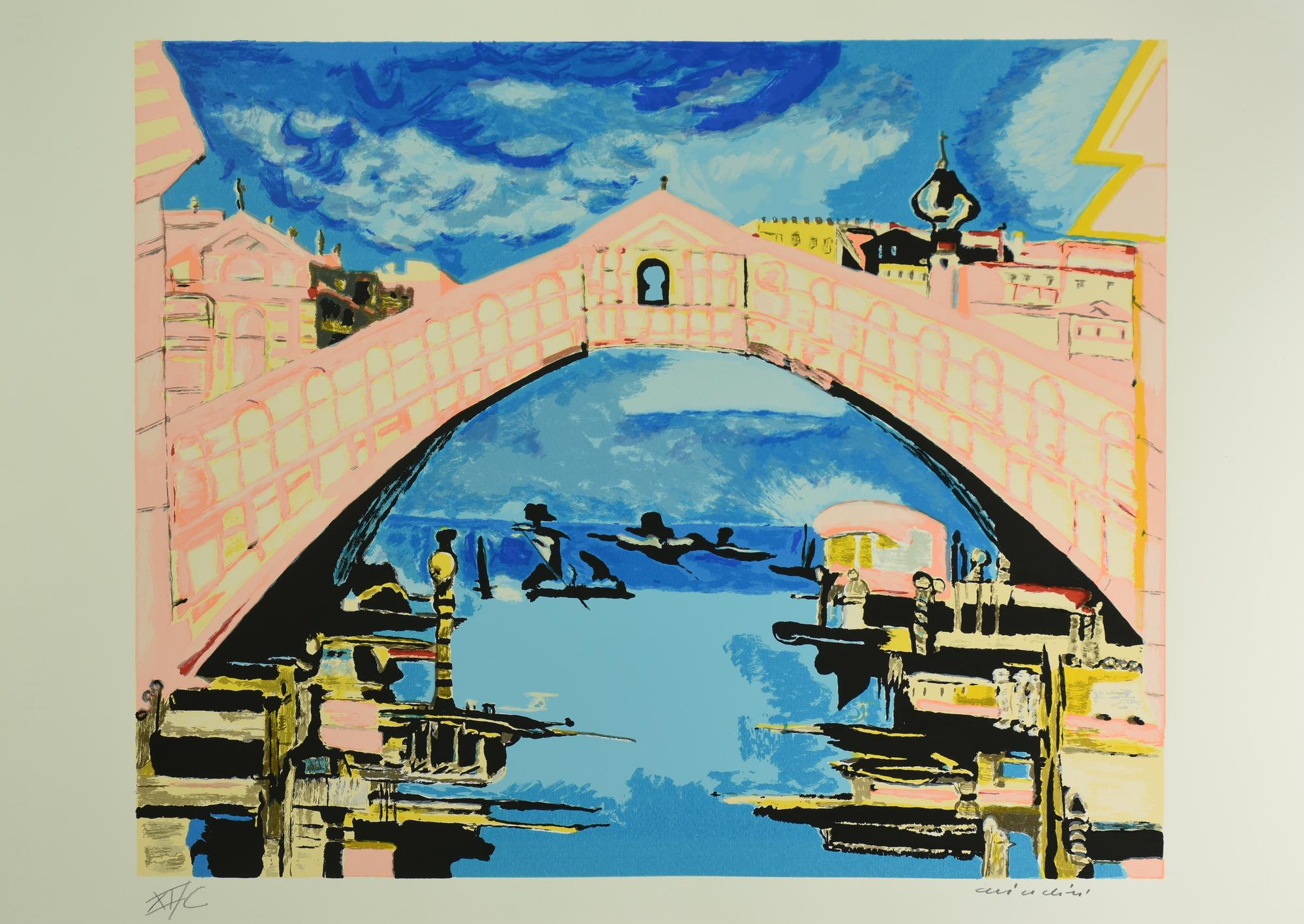 Remo Brindisi VENEZIA, PONTE DI RIALTO serigrafia su carta, cm 50x70; es....