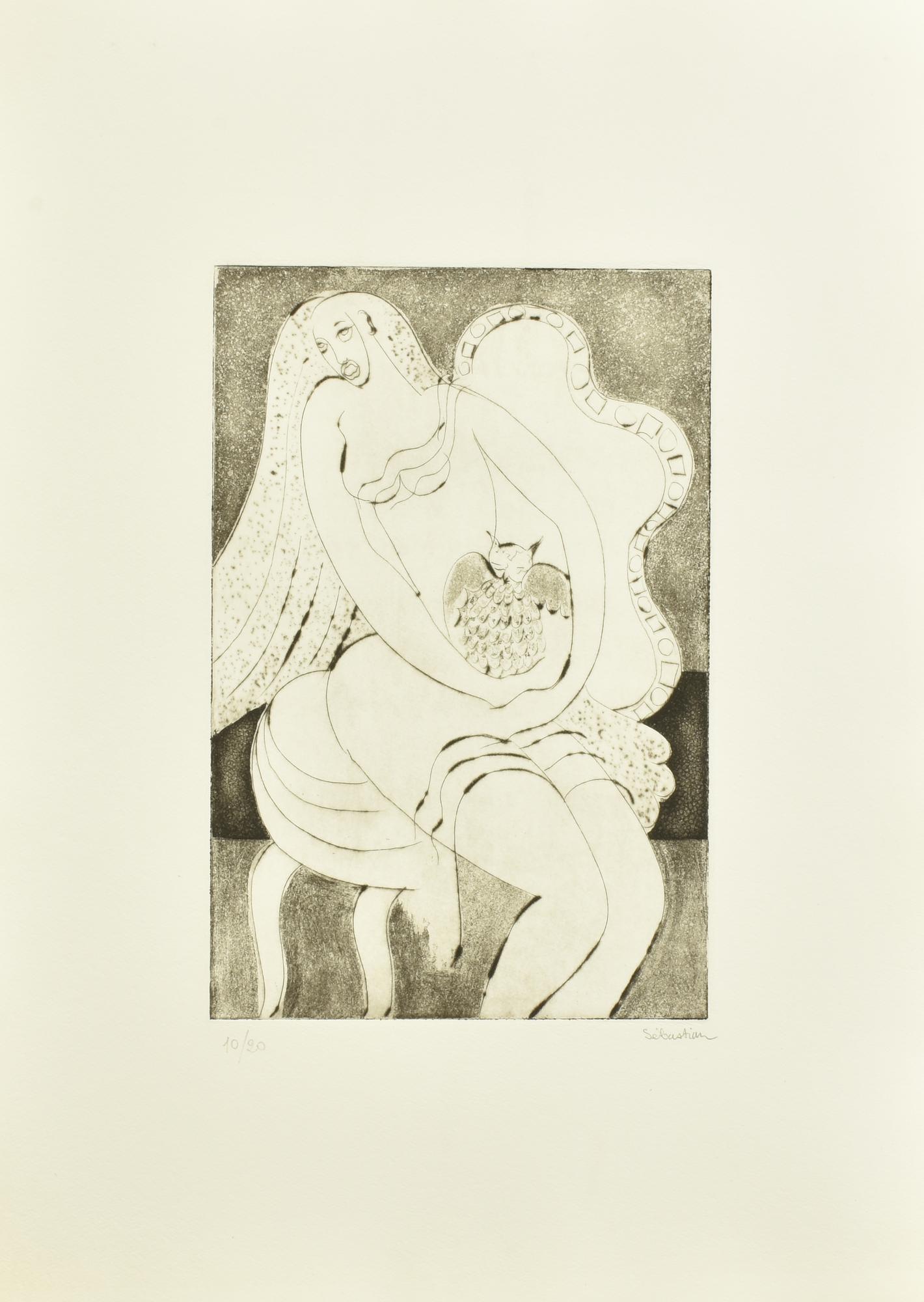 Sebastian LA CHOUETTE incisione su carta, battuta cm 30x20, su foglio cm...