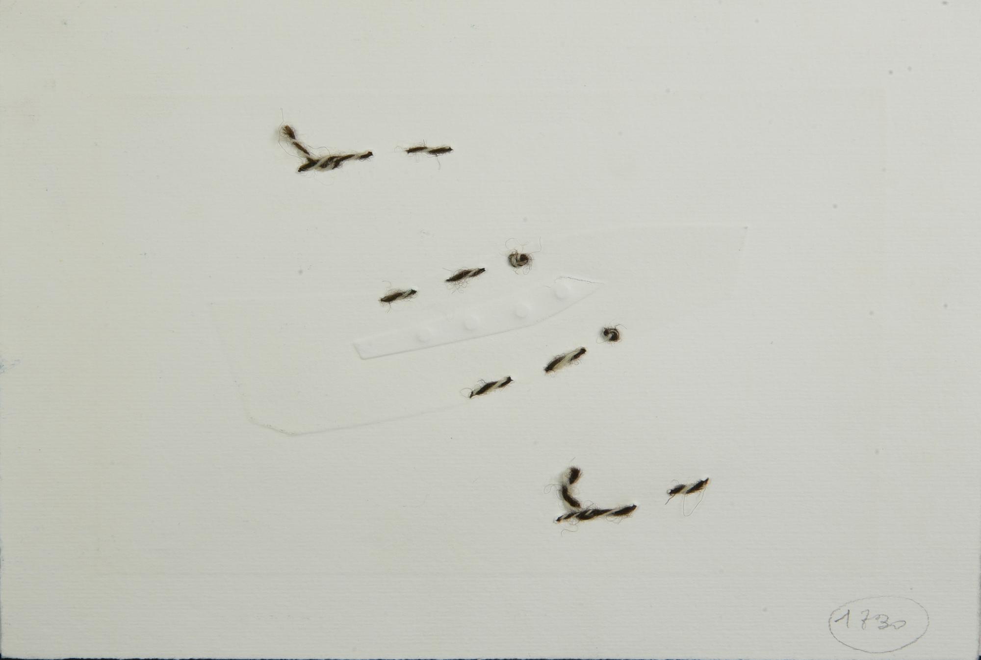 Franco Bogge FOSSILE, 1990 acquatinta e fili di lana, cm 17,5x25; es. 14/99...