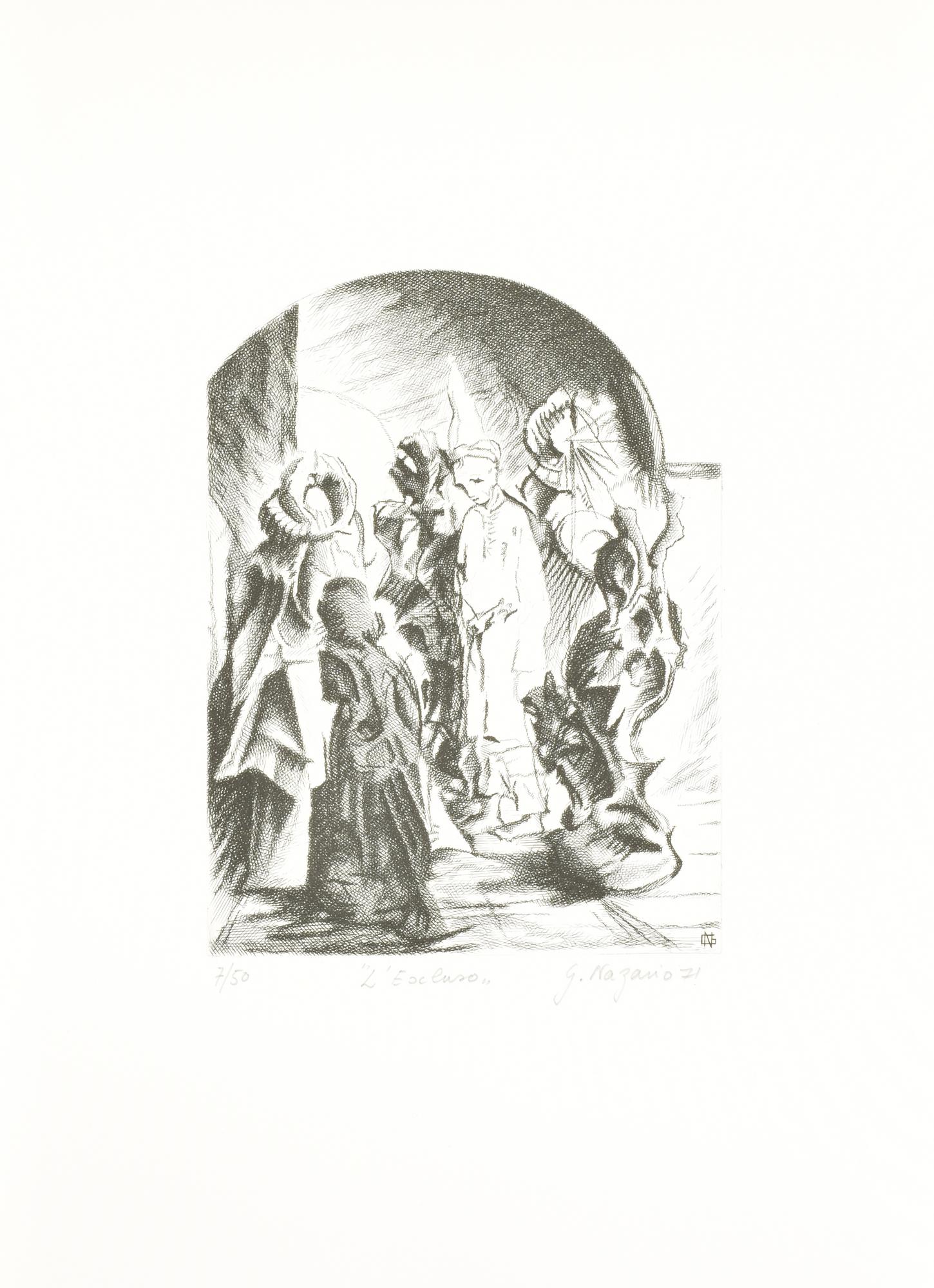 Gaudenzio Nazario L'ESCLUSO incisione su carta, battuta cm 24,5x18,5, su...