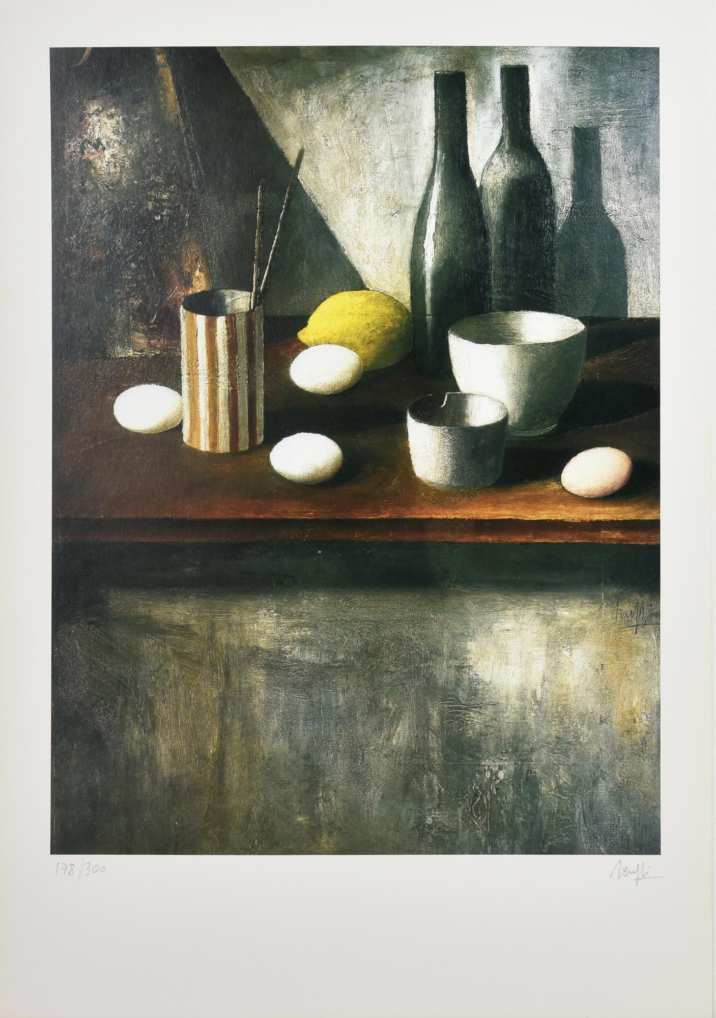 Marcello Scuffi NATURA MORTA CON LIMONE E UOVA litografia su carta, cm...